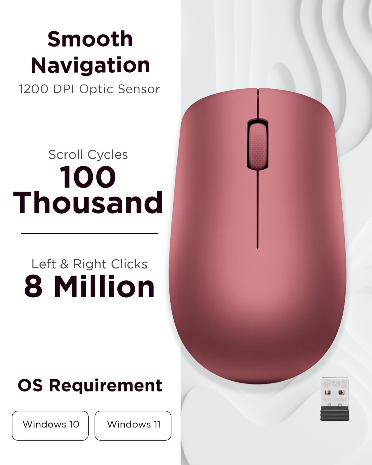 In a world where reliability and convenience are paramount, the 530 Wireless Mouse emerges as your ultimate go-to solution. Whether you're on the move or stationed at your workspace, this mouse guarantees effortless packing, seamless connectivity, and uncompromising quality. Experience the essence of plug-and-play simplicity with the 530 Wireless Mouse. No need for cumbersome setups or intricate installations – just pack, plug in, and unleash its power. Embrace the cordless convenience that 2.4 GHz wireless technology, coupled with the nano USB receiver, brings to your fingertips. No wires, no limits – just unparalleled freedom. When comfort meets innovation, you get the 530 Wireless Mouse. Discover the joy of all-day comfort that comes with its unique and expertly contoured design. Your hand will find its natural resting place effortlessly, thanks to the ergonomic prowess of this mouse. The durable soft touch finish adds a touch of sophistication, ensuring both comfort and style in one package. The 530 Wireless Mouse stands as the pinnacle of reliability and functionality. Designed to be your preferred choice, it effortlessly adapts to your needs, ensuring smooth navigation and uninterrupted performance. With its sleek exterior and sophisticated features, this mouse becomes an extension of your productivity. Reliable Wireless Connectivity: The 530 Wireless Mouse offers a dependable connection no matter where you are. Its advanced nano USB receiver utilizes robust 2.4 GHz wireless technology, ensuring seamless performance without the hassle of cords. Stay productive and focused without the constraints of wired setups. Precision Tracking at Your Fingertips: Elevate your user experience with the 1200 DPI resolution optical sensor featured in this wireless mouse. Experience responsive and clear tracking that enhances your navigation, whether you're browsing the web, creating presentations, or engaging in detailed design work. Precision is now at your fingertips. Durability That Lasts: With the 530 Wireless Mouse, longevity is a guarantee. Boasting a remarkable lifespan of up to 8 million clicks for both left and right buttons, this mouse is built to withstand the rigors of daily use. Enjoy reliable performance for years to come, making it an ideal companion for your computing tasks. Ergonomic Comfort for Extended Use: Experience unparalleled comfort during long work sessions with the unique and contoured design of the 530 Wireless Mouse. Crafted for maximum ergonomics, this mouse fits perfectly in your hand, ensuring all-day comfort. The durable soft touch finish adds a premium feel to your interactions, making productivity a breeze. Versatility and Portability: Whether you're left-handed or right-handed, the 530 Wireless Mouse accommodates your preference. Its ambidextrous design ensures functionality and comfort for all users. Weighing just 65g (2.29 oz), it's the ultimate travel companion. Slip it into your laptop bag or pocket and enjoy its lightweight portability wherever you go. Plus, with an impressive battery life of up to 12 months (actual duration may vary based on usage), you can confidently use it without worrying about frequent recharges. Choose the 530 Wireless Mouse for unparalleled performance, comfort, and convenience.