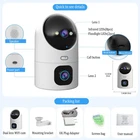 Dual Cameras & Support 5G/2.4G WiFi: This 5g wifi dual lens security camera has two cameras, it can monitor 2 different areas at the same time, which is more flexible and convenient than traditional cameras. The wifi camera supports 5GHZ and 2.4GHZ WiFi networks. The dual lens wifi indoor camera can be controlled remotely by APP "cam720". Just plug in the camera (power adapter included), connect it to a WiFi network, you can finish its setup easily and quickly in minutes. Real-time Detection & Sound Alarm & Message Push: Once indoor security camera detects motion or sound, the indoor camera will sound an alarm and your phone will receive a message push. You can also customize the detection sensitivity (high, medium, low) of the dual lens camera indoor, which can reduce false alarms by 90%! Secure Cloud & Micro SD Card Storage: The dual lens wifi camera provides secure and convenient cloud storage, no one can access your information without your permission (even if the Micro SD card is lost), and you can view up to 30 days of video history. If you are not interested in cloud storage, you can also save videos via Micro SD card (not included), with a maximum capacity of 256GB. Color Night Vision & 8X Digital Pan Tilt Zoom: This pan tilt zoom indoor camera with 12 infrared lights and 2 floodlights, it supports infrared/full color/auto(smart) 3 night vision modes. Up to 355° Pan and 80° Tilt angle of view allows the indoor camera to cover an ultra-wide area of your home or bedroom. At the same time, with 8x digital pan tilt zoom, the dual lens security camera allows you to take and view clear photos and videos from farther away. 2-Way Audio & One Touch Call: The dual lens pet camera has a built-in microphone and speaker, which not only provides high-quality two-way audio, but also provides touch-to-talk. When your kids and elderly need help, they can press the phone button on the indoor camera to talk to you immediately. The dual lens wifi camera is widely used for home, pet, cat, dog, baby, nanny.