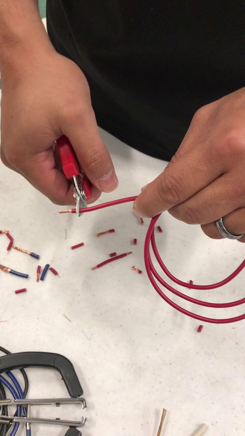 For low voltage soft copper and electrical wire only Cut wire with one end; strip wire with the other end; Compact head for working in confined areas Stripper self-adjusts to wire size Stripping Capacity: 26 to 14 AWG wire; Cutting Capacity: 14 AWG stranded wire Jaws and stripper made of surgical steel This patented tool cuts wire with one end and strips wire with the other end. The stripper self-adjusts to wire size as one prong holds while the other catches and strips wire in one quick motion. It is spring loaded to reduce fatigue and is designed for hundreds for wire strips. The cutter makes low profile full-flush cut. Whether stripping wire or cutting wire, it fits the hand nicely and easily. This 5" wire stripper and wire cutter is compact and light weight and makes the job really easy. easy These combination stripper / cutter is an electrician's choice.