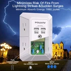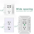 Specifications: Input Voltage: 100-240VAC; 60HZ Max.Current: 15A Max.Power Rating: 1875W USB Port Output: DC 5V, Total 4.8A Surge Protection Rating: 1680 Joules Item Dimensions: 5.5*3.8*1.7 in; Package list: 1 x Multi Outlet Extender Surge Protector with usb ports 1 x Instruction manual 1 x Paper Box Notice: Do not exceed the total rating or it may cause damage to the unit and fire hazards. This plug extender is not compatible with Gfic outlet/2prong outlet. Multi Plug Outlet: Unique 3 Side Design Power Strip with 5 AC outlets and 4 USB ports(4.8A Total), compact size of 5.5*3.8*1.7 INCH. With built-in surge protector that meets most of your needs in life, allowing multiple devices to be charged simultaneously. Smart USB Charging Ports: The total output of 4 USB ports is 5V/4.8A, can auto-detect charged devices and deliver optimum fastest charging speed up to 5V/2.4A (max) each port, USB-C up to 3A. NOTE: The USB-C port doesn't support Macbook, Macbook Air, Macbook Pro or any other laptops which needs 9~22V charging voltage. Widely Spaced & Fast Installation: This power outlet with 5 AC outlets built-in 1680 Joules surge protector with 2.1 inches long space in between; Large spacing can charge 5 big plug at the same time without blocking; Just plug in for duplex outlet and décor outlet. And can use the screw included to secure it on duplex outlet. 5 AC Surge Protector Outlets: 3 level complementary Surge Protector Circuit which composed of TVS, MOV (metal oxide varistor), GDT (gas discharge tube), with minimum 1680J energy absorbing capacity, could protect your devices much more quickly. Fire-resistance shell with flame retardance at 1382℉ makes it more durable and longer lifetime. It truly provides great protection of your precious plugged-in devices. Our After Sale Service: ETL Certified, Our friendly and reliable customer service will respond to you within 24 hours. You can purchase with confidence, with our 30-day return and 12-month replacement.