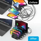 5pcs×10 USB-A Fast Charging Ports: The Charging Dock Station has 10 USB-A ports, every port is built-in BC1.2 protocol, providing up to 5V/1.5A per port; and support Apple devices 5V/2.4A fast charge. The total output power is 60W. This USB charger multi station can charge multiple USB devices in one place to release your power outlet. Perfectly Compatible with your Devices. Detachable Baffle: It adopts the design of Removable Dividers, and equipped with 55 Strong Baffles. You can assemble the removable bezel according to your needs to support a thick mobile phone or tablet. According to the product ruler, the width of baffle can be adjusted to charge freely. Use Safety: It can automatically prevent overcharging. When the battery reaches 100%, it will stop working. Smart IC can automatically detect the best charging speed of different electronic products. Distribute the perfect charge to each charging device. Provide stable and safe charging. Power Supply Adapter comes with UL listed, CE, FCC, RoHS Certified. Enjoy a Clean Desk: This charging station device enables your mobile phone, tablet and other devices to be placed orderly, and perfectly accommodating all your devices. There are no messy data cables on the table. It's a premium charging station and is perfect for offices, kitchens, bedrooms, counters, tables or bedside tables. What We Offer: 5*10 Port USB charging station, 55* detachable baffles and 5*60W DC power adapter, 24h friendly customer service and email support. NOTE: Charging cables are NOT INCLUDED. Note: Please make sure the spacing of dividers is close to the thickness of devices, and the weight of devices is bear by the charging station instead of the dividers. Suggest placing less than 11" tablets and smartphones, and don't place laptops. And the quantity of charging devices depends on the watts of devices. The total power of them does not exceed 60W.