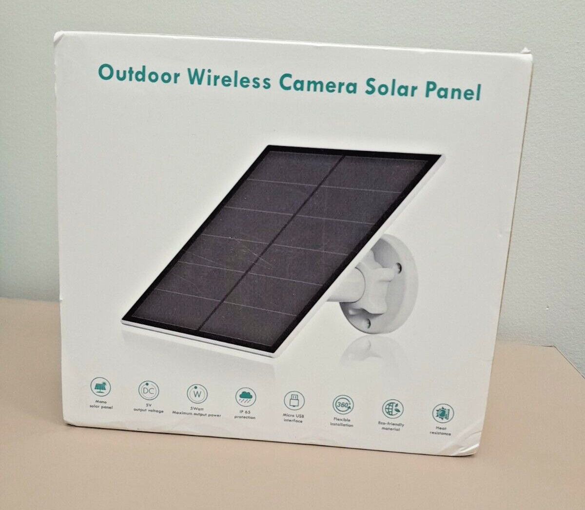 THIS CAME FROM A TWO PACK AND I ONLY NEEDED ONE. THIS IS NEW AND THE ONE I HAVE WORKS GREAT WITH MY EUFY This outdoor solar panel is the perfect addition to your home security system. With its weatherproof design, you can install it anywhere on your property and stay connected with its Wi-Fi connectivity. The panel is made by EverExceed and is designed for outdoor use. Its solar panel ensures that your camera stays charged and ready to use at all times. The model is easy to install and is compatible with various smart home protocols.