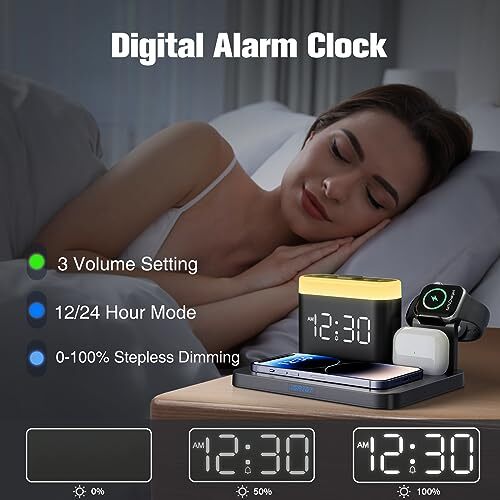 Return Policy Fast Delivery Trusted seller Wireless Charging Station, 5 in 1 Wireless Charger Stand with Alarm Clock, 7 Night Lights, Charging Dock for iPhone15/14/13/12/11/Pro/Max/XR/Samsung Phone, Apple Watch 9/8/7/6/5/SE, AirPods/3/2/1 Product Description ❗ ❗ ❗????: ????? ?? ?? ????? ?????. ?【?-??-? ???????? ???????? ??????? ???? ????? ????? & ????? ?????】You can have the benefits of a Large digital alarm clock + 7-color night light function + phone charger +Apple Watch and Airpods charger. Say goodbye to messy wires and save space for your nightstand, Beside Table, bedroom. it is both functional and adorable ⏰【???? ????? ????? ???? ?-???% ?????????? ??????????】 The brightness of LED display is dial-controlled and adjustable from 0 to 100%. which you can check your time clearly from across the room. T are 3 adjustable volume levels and time mode [ 12 or 24 HR & AM or PM ] for you to choose. Snooze allows extra 9 minutes of slumber ?【?-????? ???? ?????????? ?????】The night light has 7 color (Red,Orange,Yellow, Green,Cyan,Blue,Purple ) switching options and you can turn off or adjust the brightness 0-100% dimmer. Whether you need a soft glow for reading, breastfeed and beside night sleep or a brighter light for working, this night light has you covered ?【?????? ??????????】Support all apple and android phones with wireless charging, compatible with iPhone 15/15 Pro/15 Pro Max/15 Plus/14/14 Pro/14 Pro Max/14 Plus/13/13 Pro/13 Pro Max/13 Mini/12/12 Pro/12 Pro Max/12 Mini/11/11 Pro/11 Pro Max/X/XR/XS/XS Max/8/8Plus; Samsung Galaxy S22 Ultra/S22+/S22/S21 Ultra; AirPods 1/2/3/Pro 1; Apple Watch 9/8/7/6/5/4/3/2/SE/Ultra ?【????? & ??????? ??????】 AC-powered, but can be backup with 3*AAA batteries (battery is not included). The time will show and your alarm will still wake you up in the morning in case of power outage. You will get the wireless charging station 5 in 1, type-C power adapter and the user manual, Such a great gift idea!! ?【?????/??????? ???? ????????】The apple charging station supports most phone cases not thicker than 2 inches/5 mm, so saving the trouble to remove the case (not including cases with magnetic or metal attachments) ?【???????? ????????? ???? ???????? ???????? ???????】Equipped with 18W charger adapter, this charging station for apple devices can charge with 3 devices together. which is built with Over-current, over-voltage, over-temperature, short circuit protection, foreign substance examination. Through the heat dissipation holes on the back of charging station, to protect your devices from overcharge damage and ensure safe charging Shipping Returns Payment Shipping Shipping is FREE to all addresses other than APO/PO boxes in the lower 48 states. All our stock ships from US-based warehouses. Shipped via USPS or UPS (depending on location and package weight) Unless stated otherwise, all orders will ship within 24-72 hours of your payment being processed. Check our feedback to see the great reviews of FAST shipping we offer. Returns Seller does not accept returns Payment We currently accept payment via eBay managed payments only. Once payment is cleared, we will dispatch your shipment within 1-3 business days. Please refer to the "Shipping" tab for more information regarding shipping speed to your destination.