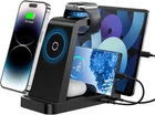 [Upgraded 5-in-1 Wireless Charger] The wireless charger for iphone is the perfect addition to any desk or nightstand. It allows you to charge multiple devices simultaneously,Designed specifically for iPhone 16e/16/15/14/13/12/11/XS/XR/XS Max/X/8Plus series,iWatch 10/9/8/7/SE/6/5/4/3/2 series, AirPods Pro 4/3/2/1,iPad series,and devices with Type-C port.With just one cable,you can say goodbye to cluttered cables and bring convenience to your daily life [36W Fast Charging station] The wireless charging station comes with a 36W fast charging adapter that can efficiently and quickly charge up to 5 devices simultaneously in 2-3 hours, faster than the original charging adapter. The iPhone and iWatch are designed to charge wirelessly, making it easy to use them. The package comes with a USB to Lightning cable for charging iPad,a Type-C to Type-C cable for charging Android devices. (Please note that the case thickness should be less than 5mm) [Practical and Compact] Our charging station for apple devices is designed to optimize desktop space, featuring USB and Type-C charging ports along with cables for added convenience. The partition included in the charger helps you to efficiently organize your devices while they are being charged so you can wake up to all of your devices fully charged and in order. This charging dock is the perfect solution for anyone looking to simplify their charging experience and maintain a tidy workspace [Wide Compatibility and Cable Replacement] With such flexibility in charging, our wireless charger allows you to personalize your charging life to your needs.It offers wide compatibility with devices that adapte USB to Lightning cables such as power bank,electric toothbrushes,electric shaver.Type-C to Type-C cable can charge for Apple devices like the magic mouse and numeric keypad for Mac. Furthermore, it allow for USB and Type-C charging ports with your own cables for charging other devices [Safe Charging Station for Multiple Devices Apple] Our multi charger station has passed FCC certification and features over-current, over-voltage, over-temperature, and foreign body detection protection. It also has a reasonable circuit design to avoid overcharging. The charger has 16 air vents and 4 non-slip pads at the bottom to safely dissipate heat and charge your devices [Packaging and Services] The package includes 1x 5-in-1 wireless charger for apple, 1x 36W adapter, 1x Type-C to Type-C cable (gift), 1x USB to Lightning cable (gift), 1x user manual. This wireless charging station for apple products is easy to install and makes a practical gift for your family and friends. Plus, with a 24-month warranty and 24-hour customer service, you can buy with confidence Product Description 2025 Upgraded 5 in 1 Wireless Charger This 5-in-1 wireless charging station is designed for your iPhone, iWatch, AirPods, iPad, and devices that are compatible with USB and type-c charging ports. One charger replaces 5 chargers, helping you get rid of desktop clutter! Give you a clean and orderly living space! Provide More Options for Charging The 5 in 1 wireless charger comes with a USB to lighting and a type-c to type-c cable. You can also choose to use your own USB port cable or type-c port cable to charge compatible items, simplifying your life and eliminating the hassle of multiple charger cables.