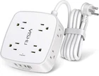 【4+4 Outlets Power Strip with 4 USB Ports】- The 3-side power strip with 8AC widely outlets and 4 USB charging ports total 4.2A, each USB A port features 5V/2.4A Max output. USB C charging port features 5V/3A MAX. can power up to 12 devices simultaneously.Wide range voltage design, can be used on 120v to 240v circuit. 【Surge Protector Power Strip with 3 Side Design & Wide Space】- 3-side design that makes it easier to make the plugs not covering any outlet, and the 8 AC outlets with 1.8 inches long space in between, larger than standard 1.5-inch socket. Larger spacing makes it easier to use for all kinds of equipment.The compact design saves more space, suitable for the home, office, and college dorm room. 【Multi Safety Protection】- RoHS, FCC and ETL Certificates. This power strip has overload protection, short-circuit protection, over current protection, over-voltage protection and overheating protection. The surge protector with overload protection protects your electrical appliances from lighting, surges or spikes. The minimum energy-absorbing capacity of 600 Joules. It will automatically cut power to protect connected devices when voltage surge is overwhelming. 【6 Ft extension cord with Flat Plug and Cable Ties】- 6 Feet Right Angled Flat Plug power cord makes it more flexible ,Reusable Fastening Cable Ties Can tie up the unused cord and make it better organized. he two mounting holes on back allows this power strip to be securely installed in various applications. 【 Our After Sale Service 】- RoHS, FCC and ETL Certificates. Our friendly and reliable customer service will respond to you within 24 hours. You can purchase with confidence, with our 30-day return and 12-month replacement. Product Description YISHU 6 Ft Surge Protector Power Strip with 8 Widely Outlets and 4 USB Ports Specifications: Input Voltage: 100-240VAC; 60HZ Max.Current: 10A Max.Power Rating: 1250W USB Port Output: DC 5V, Total 4.2A Cord Length: 6 Ft Surge Protection Rating: 600 Joules YISHU Power Strip Surge Protector with 6 FT Flat Plug Extension Cord Built-in 600 Joules Surge Pretector Power Strip with 8 Outlets and 4 USB charging ports The 3-side design that makes it easier to make the plugs not covering any outlet, and the 8 AC outlets with 1.78 inches long space in between, larger than standard 1.5-inch socket. Larger spacing makes it easier to use for all kinds of equipment. 3USB A charging ports and 1USB C charging Port total 4.2A, each USB A port features 5V/2.4A Max output. USB C charging port features 5V/3A MAX. Can power up to 12 devices simultaneously.Wide range voltage design, can be used on 120v to 240v circuit. 8 AC Outlet Extender 3 USB A & 1 USB C Smart Charging Ports 1.78 inches Wide Space AC Outlet 6 Ft extension cord with Flat Plug and Cable Ties Surge Protection LED Indicator Item Dimensions: 4.33*4.05*1.65 inches 3 Side Outlet Extender With USB Ports The 3-side power strip with 8AC widely outlets and 4 USB charging ports can fit for larger adapters without blocking each other. The compact design saves more space, suitable for the home, office, and college dorm room. 3 USB-A Ports and 1 USB-C Port 3 USB A Ports & 1 USB C Port total 4.2A, each USB A port features 5V/2.4A Max output. USB C charging port features 5V/3A MAX. Meets the charging needs of most cell phones. NOTE: The UCB-C port doesn't support any other devices which need 14~22V charging voltage. Larger spacing Outlet The AC outlets with 1.78 inches long space in between, larger than standard 1.5-inch socket. Larger spacing makes it easier to use for all kinds of equipment. 45° plug design is more convenient to use The 45° plug design makes it possible not to interfere with your simultaneous use of other devices, which brings the best experience. Multi Safety Protection The surge protector with overload protection protects your electrical appliances from lighting, surges or spikes. The minimum energy-absorbing capacity of 600 Joules. It will automatically cut power to protect connected devices when voltage surge is overwhelming. 1382°F Flame-Retardant Materials Shell 1382 ° F flame retardant material housing can effectively prevent the occurrence of fire, to ensure the safety, tips. For your safety, do not exceed the product's power rating of 1250W when using the device, otherwise it may cause damage to your device! 6 Ft Extension Cord with Cable Tie 6 Feet Right Angled Flat Plug power cord makes it more flexible ,Reusable Fastening Cable Ties Can tie up the unused cord and make it better organized. Mounting Hole Mounting Method 1. Measure the distance between the 2 keyhole slots with the same direction on the back of the power strip. 2. Punch 2 holes on the baseboard with the distance you just measured and insert two self-tapping screws. 3. Put the power strip into the screws and then pull it down a little bit. Please ensure that the screws slide into the smaller holes.