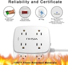【4+4 Outlets Power Strip with 4 USB Ports】- The 3-side power strip with 8AC widely outlets and 4 USB charging ports total 4.2A, each USB A port features 5V/2.4A Max output. USB C charging port features 5V/3A MAX. can power up to 12 devices simultaneously.Wide range voltage design, can be used on 120v to 240v circuit. 【Surge Protector Power Strip with 3 Side Design & Wide Space】- 3-side design that makes it easier to make the plugs not covering any outlet, and the 8 AC outlets with 1.8 inches long space in between, larger than standard 1.5-inch socket. Larger spacing makes it easier to use for all kinds of equipment.The compact design saves more space, suitable for the home, office, and college dorm room. 【Multi Safety Protection】- RoHS, FCC and ETL Certificates. This power strip has overload protection, short-circuit protection, over current protection, over-voltage protection and overheating protection. The surge protector with overload protection protects your electrical appliances from lighting, surges or spikes. The minimum energy-absorbing capacity of 600 Joules. It will automatically cut power to protect connected devices when voltage surge is overwhelming. 【6 Ft extension cord with Flat Plug and Cable Ties】- 6 Feet Right Angled Flat Plug power cord makes it more flexible ,Reusable Fastening Cable Ties Can tie up the unused cord and make it better organized. he two mounting holes on back allows this power strip to be securely installed in various applications. 【 Our After Sale Service 】- RoHS, FCC and ETL Certificates. Our friendly and reliable customer service will respond to you within 24 hours. You can purchase with confidence, with our 30-day return and 12-month replacement. Product Description YISHU 6 Ft Surge Protector Power Strip with 8 Widely Outlets and 4 USB Ports Specifications: Input Voltage: 100-240VAC; 60HZ Max.Current: 10A Max.Power Rating: 1250W USB Port Output: DC 5V, Total 4.2A Cord Length: 6 Ft Surge Protection Rating: 600 Joules YISHU Power Strip Surge Protector with 6 FT Flat Plug Extension Cord Built-in 600 Joules Surge Pretector Power Strip with 8 Outlets and 4 USB charging ports The 3-side design that makes it easier to make the plugs not covering any outlet, and the 8 AC outlets with 1.78 inches long space in between, larger than standard 1.5-inch socket. Larger spacing makes it easier to use for all kinds of equipment. 3USB A charging ports and 1USB C charging Port total 4.2A, each USB A port features 5V/2.4A Max output. USB C charging port features 5V/3A MAX. Can power up to 12 devices simultaneously.Wide range voltage design, can be used on 120v to 240v circuit. 8 AC Outlet Extender 3 USB A & 1 USB C Smart Charging Ports 1.78 inches Wide Space AC Outlet 6 Ft extension cord with Flat Plug and Cable Ties Surge Protection LED Indicator Item Dimensions: 4.33*4.05*1.65 inches 3 Side Outlet Extender With USB Ports The 3-side power strip with 8AC widely outlets and 4 USB charging ports can fit for larger adapters without blocking each other. The compact design saves more space, suitable for the home, office, and college dorm room. 3 USB-A Ports and 1 USB-C Port 3 USB A Ports & 1 USB C Port total 4.2A, each USB A port features 5V/2.4A Max output. USB C charging port features 5V/3A MAX. Meets the charging needs of most cell phones. NOTE: The UCB-C port doesn't support any other devices which need 14~22V charging voltage. Larger spacing Outlet The AC outlets with 1.78 inches long space in between, larger than standard 1.5-inch socket. Larger spacing makes it easier to use for all kinds of equipment. 45° plug design is more convenient to use The 45° plug design makes it possible not to interfere with your simultaneous use of other devices, which brings the best experience. Multi Safety Protection The surge protector with overload protection protects your electrical appliances from lighting, surges or spikes. The minimum energy-absorbing capacity of 600 Joules. It will automatically cut power to protect connected devices when voltage surge is overwhelming. 1382°F Flame-Retardant Materials Shell 1382 ° F flame retardant material housing can effectively prevent the occurrence of fire, to ensure the safety, tips. For your safety, do not exceed the product's power rating of 1250W when using the device, otherwise it may cause damage to your device! 6 Ft Extension Cord with Cable Tie 6 Feet Right Angled Flat Plug power cord makes it more flexible ,Reusable Fastening Cable Ties Can tie up the unused cord and make it better organized. Mounting Hole Mounting Method 1. Measure the distance between the 2 keyhole slots with the same direction on the back of the power strip. 2. Punch 2 holes on the baseboard with the distance you just measured and insert two self-tapping screws. 3. Put the power strip into the screws and then pull it down a little bit. Please ensure that the screws slide into the smaller holes.