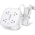 Specifications: Input Voltage: 100-240VAC; 60HZ Max.Current: 10A Max.Power Rating: 1250W USB Port Output: DC 5V, Total 4.2A Cord Length: 6 Ft; Item Dimensions: 4.33*4.05*1.65 in; Package list: 1 x Power Strip with usb Port 1 x Instruction manual 1 x Paper Box Notice: Do not exceed the total rating or it may cause damage to the unit and fire hazards 【4+4 Outlets Power Strip with 4 USB Ports】- The 3-side power strip with 8AC widely outlets and 4 USB charging ports total 4.2A, each USB A port features 5V/2.4A Max output. USB C charging port features 5V/3A MAX. can power up to 12 devices simultaneously.Wide range voltage design, can be used on 120v to 240v circuit. 【Surge Protector Power Strip with 3 Side Design & Wide Space】- 3-side design that makes it easier to make the plugs not covering any outlet, and the 8 AC outlets with 1.8 inches long space in between, larger than standard 1.5-inch socket. Larger spacing makes it easier to use for all kinds of equipment.The compact design saves more space, suitable for the home, office, and college dorm room. 【Multi Safety Protection】- RoHS, FCC and ETL Certificates. This power strip has overload protection, short-circuit protection, over current protection, over-voltage protection and overheating protection. The surge protector with overload protection protects your electrical appliances from lighting, surges or spikes. The minimum energy-absorbing capacity of 600 Joules. It will automatically cut power to protect connected devices when voltage surge is overwhelming. 【6 Ft extension cord with Flat Plug and Cable Ties】- 6 Feet Right Angled Flat Plug power cord makes it more flexible ,Reusable Fastening Cable Ties Can tie up the unused cord and make it better organized. he two mounting holes on back allows this power strip to be securely installed in various applications. 【 Our After Sale Service 】- RoHS, FCC and ETL Certificates. Our friendly and reliable customer service will respond to you within 24 hours. You can purchase with confidence, with our 30-day return and 12-month replacement.
