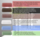 6 Pcs Metal Buffing Polishing Compound for Buffing Wheel, Buffing Wheel Compound, Grit Corresponds to The Color from Coarse to Fine for Stainless Steel, Jewelry, Aluminum Polishing Compound Product Details Package Dimensions : 5.47 x 2.72 x 0.75 inches; 6.4 ounces Item model number : lb-52 Manufacturer : Tworider Country of Origin : China Material: fatty acid Grit Material: Diamond, Metal, Wool, Emery Brand: Tworider Grit Type: Fine Compatible Material: Wood, Stainless Steel, Aluminum, Glass, Leather, Plastic, Metal, Rubber, Copper 【 WHAT YOU GET】:The polishing compound kit contains 6 different buffering compounds:All Purpose Blue, white diamond, brown tripoli, general green, black emery, red rouge. A great kit for burr-free mirror finish all kinds of projects.This package can meet all your needs. 【COLOR CODED 】:These polishing compounds are colored differently to indicate their thickness for easy identification. Use it in order of polishing from coarse to fine, and the polished object will have a mirror or high-gloss effect to increase visual appeal. 【Compound Size】:All compounds (General Green,White Diamond, Brown Tripoli, General Green, Black Emery, Red Rouge) are the same size- Length: 60mm ,Width: 23,Height: 17 【How to Use】:Before polishing the workpiece, the workpiece should be roughly ground, and the polishing wax can only be used after reaching a certain flatness. The polishing wax has excellent cutting rate and light output rate, and should be used with polishing wheels such as cloth wheel, wool wheel, and hemp wheel. 【use to】:Specially used in the surface polishing of stainless steel products, stainless steel products, copper products, aluminum products, chrome products and other metal products, also used in the polishing of leather products, rubber, plastic, organic glass, wood furniture, jade and other non-metallic products. Product description Red Rouge: used for buffing soft metals like gold/silver to a brilliant high lustrous finish & will not scratch the finest or softest metals, polish gold, silver, brass, copper & nickel to a mirror finish. Black emery is a course compound used for cutting & preparing materials to be buffed on aluminum, stainless steel, horn & wood. not for plastics & softer metals like gold.Brown Tripoli is used for cutting & removing scratches from aluminum & stainless steel, bringing out a high luster even on wood.White Diamond: is courser than red rouge used for removing deep scratches from soft metals or as a polishing compound on aluminum, gold, silver, brass & copper.Green:is used to finish stainless steel to a high luster mirror like finish & for other hard metals but not for plastics & softer metals like-Purpose Green: versatile compound is safe for use on all materials even plastic (can’t be used on low melting point plastic). How to Use: Install the cloth wheel on the polisher. When the cloth wheel rotates at high speed on the polisher, apply polishing compound. when the cloth wheel is warm, the compound will be soft and stick to wheel. Function: Perfect for Polishing, Cutting, Waxing, Cleaning, Repairing, Restoring, Reviving etc. Wide Application: Widely applied in Restoring Brass, Cleaning Furniture, Polishing Jewelry, Cutting Bumpy Stainless, Working Auto Body, Waxing the Surface, Glossing the Metal, Buffing the Glass, Repairing the Cast-Iron and more.