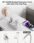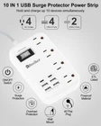 4 AC Outlets, 13A,1625W Type B Ultra Thin Flat Plug 6 USB(2 Type C+4 USB-A) Total:5V 4.8A,24W Max(Smart IC) 110~250V input 5 Feet Braided Extension Cord 980J Surge Protector Size:5.2*3.2*1.2In Weight:10.9 oz Certificate:ETL,FCC Note :The Type-C port doesn't support Macbook,Macbook Air,Macbook Pro or any other laptops which needs 14~22V charging voltage) 【6 USB Fast Charging Station】-USB-C port provides 5V 3.1A 15.5W ,6 USB ports total provides 5V 4.8A-24W.With smart charging technology,the 2 Type-C and 4 USB-A ports will identify your devices automatically and deliver the most suitable charging speed.Great for most of your electronic devices,travel essentials and dorm room essentials(NOTE:The Type-C port doesn't support Macbook Pro,Macbook,Macbook Air,or any other laptops which needs 14-22V charging voltage) 【10 in 1 Surge Protector Power Strip with USB ports】-The USB C Outlet Extender features 4AC outlets (1625W/125V/13A),and 4 USB-A 2 USB-C ports (tota 5V/4.8A/24W ), could charge 10 devices simultaneously.This USB travel power strip would charge your iPhone,iPad,laptop,tablet,cameras etc,suitable for the home,office,travel and dorm room 【5Ft Braided Extension Cords with Ultra Thin Flat Plug】With 0.59 inch ultra thin plug and 45° right angle design, the surge protector with usb ports is much thinner than traditional plugs, which can close to the wall easily, and hide in the back of furniture, bed or refrigerator; 5ft 16AWG flat extension cord is made of pure copper, which has better current carrying capacity (13A). The braided fabric power cord is not easy to deform, is durable and more safety 【Wall Mountable and Desktop Power Srip】This wall mount power strips has 2 mounting holes design allows you to securely install this flat extension cord, including behind TV, workbench, garage, bedside, bathroom, laundry room, or under desk/cabinet.Anti-Skid Pad design at the bottom,better for on the desktop 【Multiple Safety Protection USB Power Strip】The travel accessories surge protector outlet is certified by ETL,FCC, and made of Fire-resistant PC shell, with built-in multiple security module safeguards your electronic devices from surge,short circuit,over-voltage and over-current. 980J Surge protection rating to keep your electronics and mobile devices protected from voltage spikes.Lighted on/off switch with integrated circuit breaker for overload protection of all outlets.(provides 12-month replacement and 24h service)
