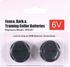 π RELIABLE REPLACEMENT: Confidently use as a replacement for PetSafe Model RFA-67 collar batteries. π DURABLE: 2 Pack of batteries provide up to 6 months of use and have a long shelf life. π COMPATIBLE: Fits most Petsafe bark and training collars, in-ground fence collars and wireless fence system collar. π WATERPROOF: Built-in gasket with a waterproof seal ensures your dog is free to swim, run through sprinklers and enjoy other water-based activities. π EASY INSTALLATION: Simply use a coin or screwdriver to remove the old battery. Put new battery in place and turn clockwise until secure Extreme Dog Fence Replacement Battery for Petsafe Model RFA-67 (2 Pack) Replacement battery for Petsafe Model bark collars, training collars, in-ground and wireless electronic fence collars. Please consult your manual to ensure the correct battery for your product. The 2-count pack of 6-volt batteries can provide up to 6 months of power (each battery can last 1-3 months with proper use). Battery has a built-in gasket that creates a waterproof seal and a coin slot for quick and easy installation. RFA-67 compatible battery is guaranteed to work with all PetSafe receivers that require a 6-volt lithium battery. These batteries will provide up to 3 months of life per battery (after the initial training battery). Get yours today!!!