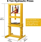 Specifications: Color: Yellow Size:6/12 Ton Material:Carbon Steel Piston Rod Stroke:4.3"/4.9" Piston Rod Diameter:1" Handle Length:17.5" Features: EASY TO USE 6/12 TON HYDRAULIC PRESS: Our hydraulic workshop power presses are equipped with 6/12T hydraulic jacks to provide strong pressure; The spring can slowly and safely bounce back after pressing down operation; Piston-ram is treated and polished to resist skiving. The hydraulic shop press can be operated easily by simply pressing or lifting the long handle for the bottle jack FLEXIBILITY: Adapts to Any Task: Adjustable working table height, The 6 Ton can adjust from 2.2" to 11.8", The 12 Ton can adjust from 1.6" to 24.8". with the convenient pin system, adjusting the height is a breeze; Plus, 2 movable stamping plates are perfect for securing small parts during use MEET ALL YOUR PROCESSING NEEDS: Our shop press is adaptable for various tasks, from automotive repairs to metalworking projects. You can use our hydraulic shop press to disassemble and reassemble automotive bushings, bearings, ball joints, pulleys, gears, and more. The press can also be used for metalworking tasks such as bending, straightening, and punching. Get the job done with ease STURDY & STABLE: The H-shaped frame structure provides a sturdy base that won't wobble or shake during use. Constructed with 0.21" thick durable carbon steel with a smooth powder-coated finish, this press is durable, corrosion-resistant and easy to clean FOR YOUR SAFETY: Equipped with a built-in safety valve, this hydraulic press ensures secure heavy lifting. The safety valve automatically activates when pressure exceeds 6/12T, preventing overpressure damage to the workbench Payment Delivery Returns Feedback We accept Payoneer only. All major credit cards are accepted through secure payment processor PayPal. Payment must be received within 7 business days of auction closing. If you have bought multiple items from me, you can send me one payment for all the items instead of paying for them individually. When you click the Pay Now button, eBay will automatically determine if there are other items you have won or purchased from me and will combine them for your review. NOTE: Import duties, taxes and chargers are not included in the item price or shipping charges. These charges are the buyer's responsibility. Please check with your country's customs office to determine what these additional costs will be prior to bidding buying. 1. We will delivery out at the handing time when we receive the payment. 2. The delivery time is 3-5 business days to US by usually time.The parcel maybe delay 1-2day of the weekend.Due to the bad weather,Holidays,Hot Season ect.the parcel maybe delay,If you have any problems,mssage us,we will try our best to solve it. 3. We ship to your eBay address. Please make sure your eBay address is correct before you pay. 4. If you want to change the shipping address,message us before our send out. 5. We cannot deliver your order if your state is PR. 1. If you donot receive the items at the delivery time,the parcel has broken/missing,Please message us before you open case/return,we will try our best to solve it. 2. We offer a 30 day return policy from checkout winning date. 3. An RMA number is required for all returns. Message us for return instructions. Items Returned without a RMA number will not be processed. 4. Items defective upon receipt must be packaged in their retail packaging as if new and returned with a detailed description of the problem. 5. Return shipping fees are not refundable.We reserve the right to decline any returns if the above guidelines are not followed. If you are not satisfied with the item for any reason, please do not quick to leave negative/neutral feedback even open request and case without any communication with us. We devote ourselves making EVERY CUSTOMER in 100% Satisfactory and resolve any problem. Thank you for your understanding and recognition,we are always leave positive feedback to all our customers. About Reply: All replies will be sent to your email box, if you do not get response within 24 hours (Sat. & Sun. excluded) please check your eBay My Messages in case that our emails will be filtered automatically by your settings.