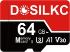 Product Description The Box include 1 pcs 64G/128G micro tf card, Easily transfer files between your digital devices and computer. 64GB Card supports up to 3 hours 4K video, or up to 10 hours 1080P video, or 18,800 photos, 9,900 songs. High Compatibility: Dosilkc Micro TF Card compatibility with and for devices with for Micro SD card slots enabled host devices including smartphones, tablets, laptops, digital cameras, game consoles, drones, etc. Reliability and Durability: Waterproof shockproof, extreme temperature resistance(operating temperature: -25° ~ 85° C, storage temperature: -40° ~ 85° C); X-ray radiation-proof, and the anti-static. Fast Data Transfer Speeds: TF memory card up to 88MB/s & 81MB/s read & write speeds respectively, U3, V30, and C10 which offer high read and fast file transfer speed, smooth as well as continuous photo shooting. Ideal for Expanding Your Device's Storage, 100% factory tested high performance premium cards to meet ultimate top quality