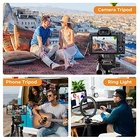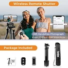 Phone Tripod 【High Quality & Portable Tripod】Made of premium aluminum alloy material, 64” phone tripod is super sturdy and durable. This iPhone tripod’s flip-lock leg design makes its setup quite easy, and its folded height of only 17” makes it easy to be carried around and record wonderful moments. 【3-Way Pan Head & 2 Built-in Bubble Levels】This cell phone tripod adopts 3-way pan head, enabling portrait and landscape mode, 180° tilting and 360° panoramic shooting, which meets almost all your angle requirements during your shooting. The built-in bubble levels keep your tripod always in level status. Easy to get a perfect shot. 【Quick Height Adjustment with Flip-Lock Design】tripod for iphone features 5-section legs plus adjustable center column and flip-lock design, you’ll get your desired camera stand tripod height easily from 17” to 64” in seconds. Ideal for both home use and travel.u’ll get your desired camera stand tripod height easily from 17” to 64” in seconds. Ideal for both home use and travel. 【Versatile Camera Tripod Stand with Rich Accessory】Equipped with a standard 1/4 screw and universal tripod phone mount, our tripod fits almost all digital cameras, action cameras and phones. The Bluetooth remote will free your hands to take photos at an maximum distance of 33ft. 【What You’ll Get】1 x tripod for iPhone, 1 x Bluetooth remote shutter, 1 x Universal tripod phone mount, 1 x carrying bag, 1 x user manual, 12-month warranty and our hassle-free and 100% satisfying after-sale services. Contact us at any time for any product issues.