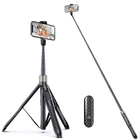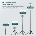 65" Selfie Stick Tripod, All in One Extendable Phone Tripod Stand with Bluetooth Remote 360° Rotation for iPhone and Android Phone Selfies, Video Recording, Vlogging, Live Streaming, Black [Super Long Tripod Pole] The super long bluetooth selfie stick ranges from 32.5cm to 165cm and has 8 adjustable bars to expand the shooting area. Perfect for taking group photos, videos, live broadcasts and online tutorials on cooking, beauty and more. [Adjustable Angle & Wide Phone Holder] With 180° rotatable head and 360° rotatable upgraded cell phone holder. phone clamp ranges from 6.0cm to 9.5cm, Compatible with iPhone 14 Pro Max/14 Pro/14 Plus/13 Pro Max/13/13 Mini/12 Pro/ 12/12 Mini/11 Pro Max/ 11 Pro/11/XS/XR/8 Plus, Samsung Galaxy S21/ S20/S10/S9 Plus/S8 and more. [Strong Tripod Base] This freestanding phone selfie stick has a 26.9cm wide tripod base with three non-slip silicone pads on the feet, which can avoid any slanting or falling situation . Made of high quality aluminum alloy, this selfie stick is sturdy, durable, scratch resistant and easy to clean. [Detachable Remote and Long Battery Life] The bluetooth remote shutter has a range of up to 10m (33ft), quick connection to your phone. So you can take photos/videos from a distance. With the built-in 50mAh rechargeable lithium battery, you can take up to 15,000 continuous shots. [Easy to Grip and Compact] The selfie stick and tripod are retractable in one piece, easy to store and carry. The handle is designed with a lychee texture in an ergonomic shape for easy grip.