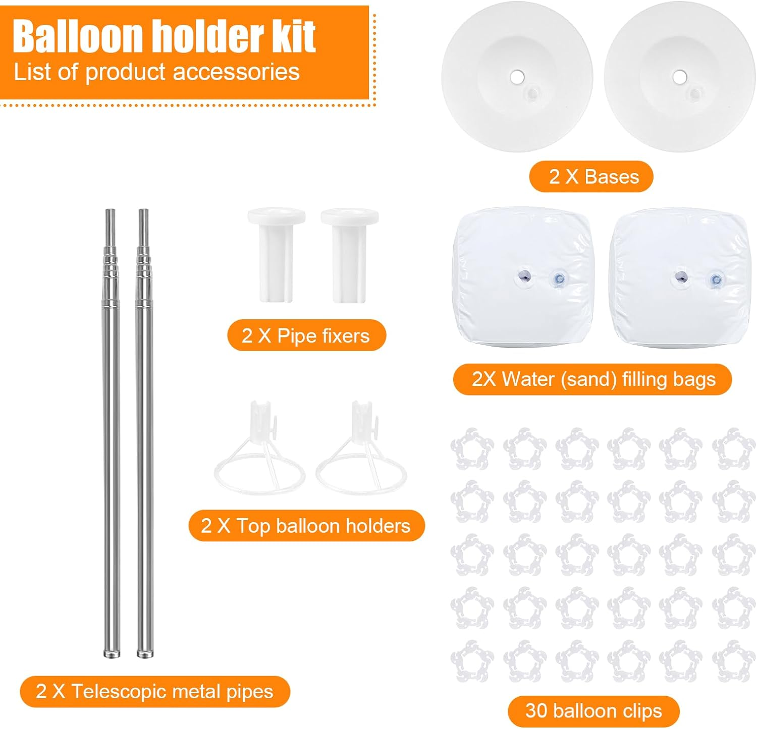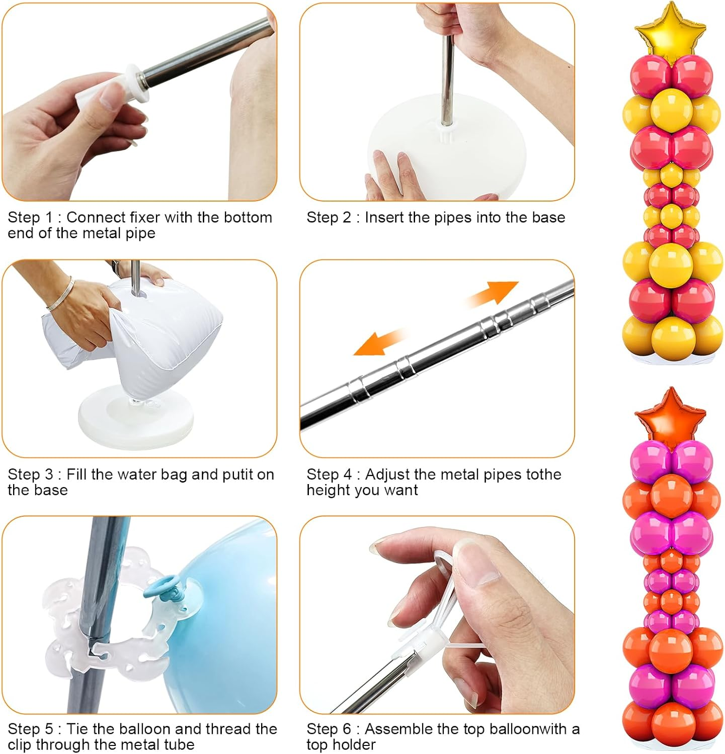 Store New Arrivals Add to Favorite View Feedback Contact Fast deliveries to the customer's home Quality customer service John Make the customers happy! Balloon Column Stand Set of 2, 6.6Ft Balloon Arch Stand Adjustable Balloon Column Kit with Base Telescopic for Baby Shower Wedding Birthday Graduation Party Decorations (2) Description Material: Our balloon column base is made of PVC material, and the rod is made of stainless steel metal, which is sturdy and reliable. Our set includes two small bases, two water bags, two telescopic rods, two telescopic rod adapters, two ball brackets, 30 multi-functional buckles, and a manual Easy to assemble and disassemble: Each kit comes with clear instructions, making it easy for you to assemble and disassemble the kit without any trouble. The process is simple, even for beginners Adjustable height: The height of each balloon column can be adjusted from 2ft to 6.6ft, depending on the height of your room and your personal preference. This allows you to create customized decorations that fit perfectly with your party theme Suitable for any occasion: Whether you're celebrating a wedding, birthday, or baby shower, or organizing a corporate event, our balloon column kit is suitable for all types of occasions. It is versatile and can be used in a variety of settings, such as indoor or outdoor events Versatile: The balloon column can be used in combination with other decoration elements, such as balloons, ribbons, and LED lights, to create stunning and eye-catching displays. The column can also be used as a standalone decorative piece, to add a touch of elegance and sop Product Description Item model number -1200 Unit Count 2.0 Count Item dimensions L x W x H 1 x 1 x 0.65 inches Color Red Product Dimensions 1 x 1 x 0.65 inches Material Polyvinyl Chloride,Metal,Stainless Steel Item Weight 1.5 pounds Theme Flower, Christmas, Thanksgiving Manufacturer recommended age 12 months and up Occasion Anniversary CPSIA Cautionary Statement No Warning Applicable Manufacturer -1 Special Feature Customizable Included Components Balloon Arch ABOUT US We offer the best prices around on high quality products. Our E-store includes media such as books, movies, music and games while offering electronics, toys, sporting apparel, clothing, tools, general home, garden items and more. SHIPPING We are always working hard to ensure your package arrives as soon as possible. Please understand that some factors like weather, high postal traffic, and the performance of shipping companies are outside of our control. We offer free shipping to the lower 48 states and ship within 2 business days of payment, usually sooner. We do not accept P.O. Boxes. Please provide a physical address. For shipping outside of the continental USA, we only use eBay's Global Shipping Program. The item is shipped to KY and then sent to the rest of the world. International customers are responsible for all duties and taxes. Continue to 'check out' to calculate costs for shipping the item to your country. Messages regarding eBay's Global Shipping Program MUST be directed at eBay EXCLUSIVELY. RETURNS We offer a 30-Day Return Policy on items in which you are not completely satisfied with. You have the option of a full-refund or an exchange of the item. No returns are available on items shipped outside of the USA PAYMENT We accept PayPal. CONTACT US This page content is yet to come Please ad us to your favorite seller and visit again later Thank You CUSTOMER SATISFACTION We try our very best to make sure every customer is completely satisfied. If there's a problem, message us! We're happy to help. WE ACCEPT