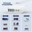 67W Dual Port USB C Power Adapter Bundle with 100W 6 Port Charging Station Product Details Brand: IFEART Connectivity Technology: USB Connector Type: USB Type C, USB, USB Type A Compatible Devices: [iPhone 15, iPad, Samsung Galaxy series, Google Pixel, iWatch, AirPod, Mag-safe charger, etc.] Compatible Phone Models: Google Pixel Included Components: 5FT Extended power cord Special Feature: Fast Charging Input Voltage: 5 Volts (DC) Mounting Type: Wall Mount Amperage: 0.91 Amps Date First Available: November 11, 2024 Manufacturer: IFEART This product is a bundle that includes 1 67W Dual Port USB C Power Adapter and 1 100W 6 Port Charging Station 67W Dual Port USB C Power Adapter- Dual Port USB C Power Adapter: any single port is max output 67W, 2 port output is C1(max 45W) + C2(max 20W); simultaneous fast charging your laptop and cellphone, carry one USB C charger to meet all your device charging need, make travel more simple 100W 6 Port Charger: 6 in 1 100W Desktop Charging Station: Equipped with 3 USB-C ports and 3 USB-A ports: USB C1: PPS 25W, USB C2: PD 20W, USB C3: PD 20W, USB A1: QC 18W, USB A2/A3 share 12W, and max 12W while single port charging. Fast charging six of your devices simultaneously instead of taking up 6 wall outlets. 5FT Extended power cord is convenient for home or office 67W Dual Port USB C Power Adapter Bundle with 100W 6 Port Charging Station