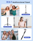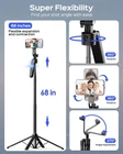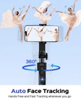68'' Auto Face Tracking Tripod for i, 360° Rotation Tripod with Wireless Remote and Holder, Selfie Stick Tripod for Android , Applied to YouTube, Tiktok, Facetime 【3-in-1 Tripod & Selfie Stick & Stand】This flexible selfie stick tripod transforms into a selfie stick, desktop tripod, and stand. It can be used on a desk or floor, lengthens up to 68 inches, and folds compactly for travel. Compatible with most smarts, including is and Android devices, it fits screens from 4 to 7 inches. 【360° Auto Face Tracking】The Auto Face Tracking Tripod uses progressive AI technology and has successfully passed 5,000 intelligent sensor tests. Its highly sensitive design automatically follows and rotates with your face and body movements, assuring you remain centered on the screen. 【Sturdy Four-Leg Design】Composed of high-quality aluminum alloy for lasting endurance and stability. With extended tripod legs and an umbrella-like skeleton structure, plus improved four-point support, metal ribs, and aluminum alloy telescopic rods, this tripod for i provides exceptional stability even during video recording. Perfect for those needing a tall tripod, selfie stick tripod with remote, or stand. 【Smart Gesture Control】This tripod employs a sophisticated gesture recognition algorithm. Making the OK gesture initiates action, while an open palm gesture signals pause. It reacts to your commands like a robot, seamlessly integrating with various video apps such as TikTok, Instagram, Facebook, Zoom, and for live streaming, photo, and video shooting. 【Removable Remote Control For Easy Wireless Shooting】Comes with a removable remote control, the selfie stick allows wireless control within a range of up to 33 feet (10 meters). Enables effortless one-touch shooting, perfect for individuals seeking remote capabilities in their selfie stick tripod or i recording setup. 【360° Rotating Balance Handle, Suitable For Various Angle Shooting】With adjustable tabs, this holder can be extended to accommodate the max. width of your cell to 90mm, ensuring a secure fit. Its 360-degree rotation capability allows you to find the perfect angle for optimal use, providing an exceptional user experience. 【Reaches Up To 68 Inches For Capturing Every Special Moment】Crafted with five sections of durable aluminum alloy, the telescopic rod extends to a maximum length of 68 inches (175 centimeters). Ideal for travel enthusiasts seeking to effortlessly capture a wider perspective, it's perfect for seizing those unforgettable moments during journeys. 【Flexible 1/4 Interface For Enhanced Shooting Variety】Featuring a 1/4 interface, compatible with smarts, cameras, and beyond. Provides numerous shooting possibilities for photography enthusiasts, serving as the perfect partner for a stand, tall i tripod, or camera tripod. 【Comes With A Durable Storage Bag For Added Convenience】Keep your tripod protected during transport and neatly stored when not in use. Perfect for on-the-go shooting and ensures your equipment stays organized and safe.