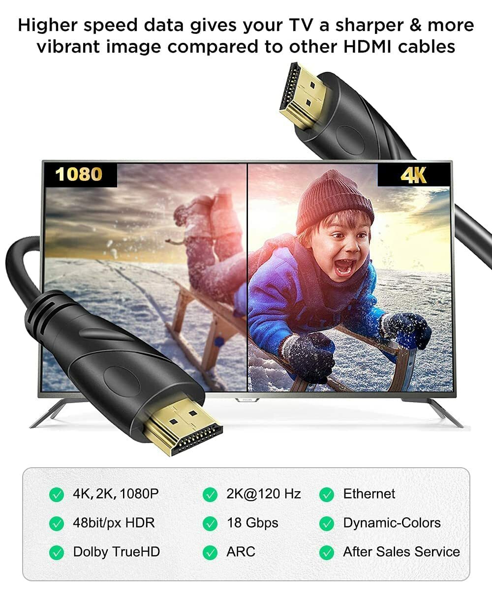 4K HDMI Cable 6FT - (HDMI 2.0,18Gbps) Ultra High Speed Gold Plated Connectors,Ethernet Audio Return,Video 4K,FullHD1080p 3D Compatible with Xbox Arc PS3 PS4 PS9 PC HDTV - Black Description 【Supports Latest HDMI Standard 】 Upgraded HDMI 2.0 HD cables, 4K HD picture quality transmission, more exquisite picture, enjoy the 3D vision, enjoy theater level effect at home. 【Quality Experience 】 No double image, no flashing screen, TMDS transmission differential signal, aluminum foil ground woven (round) multiple shielding, transmission stability without loss.Large screen projection, office/speech more clear and efficient, automatic synchronization of audio and video, no manual adjustment, enjoy sound vision. 【 Maximizing Signal Strength 】Gold plated interface, corrosion and oxidation resistance, long-term use of rust, signal transmission is still stable.100% Pure copper conductors, Triple Cable Shielding, 24K Gold-plated full metal jacket connectors. 【 Compatible with all HDMI Components 】Connect Blu-Ray Player, Apple TV, Xbox One, PS4, Roku, and laptops with HDMI output to 4K UHD TV, projectors, A/V Receiver, etc. 【 THE BIGGEST COMMITMENT TO CUSTOMERS 】If you are not 100% satisfied, please let me know. We will ensure that limited Lifetime Warranty and US-based customer support. - TOP Series High-Speed HDMI-HDMI 4k Cable with Ethernet - HDMI (High-Definition Multimedia Interface) is the current standard for HD devices. High-speed HDMI cable combines 4k video, HD sound, and Internet into one convenient, flexible, and durable cable. Perfect for your home-entertainment system, games console, big-screen HD or 3D TV, projector, and/or computer monitor. This cable provides you with a flawless transmission, so you to enjoy the very latest standards in HD technology. - Key Features - • 4K (Ultra HD): 4096 x 2160 • 1080p: 1920 x 1080 • 3D for every resolution including 4K • Ethernet Function • ARC Function • HD Audio • Backwards compatible with all previous HDMI standards - You Experience High-Def Images, Deep Colors, and HD Audio - [Superior Connection] : Gold-plated, corrosion-resistant connectors delivers optimal signal transfer with lower distortion. [Pure Signal] : Double shielding (consisting of alu mylar foil and thick aluminum braiding), and oxygen-free copper conductors reduce outside interference and maximizes your signals strength. Every feature, including 4k (Ultra HD) in 3D, the Audio Return Channel. Use With Any HDMI Device Your high-speed HDMI cable is compatible with all HDMI and HDMI 2.0 devices and backward compatible with all previous HDMI standards. Simply connect your TV/monitor to your PS4, PS3, Xbox One, AV Receivers, beamers, projector, or other HDMI device to experience an interruption-free, high-resolution display with deeper colors. Every-single-cable is put through relentless quality checks throughout production. Shipping We only ship items to your eBay registered address for fast and accurate shipment. Thanks We will ship most orders within 1 business day some items ship same day if ordered early enough Delivery >All shipments are shipped via USPS First Class (2-6 business day) from United States. Return Policy All items qualify for returns within 30 days of receipt. Feedback 1.We strive for 5 star positive feedback. We try our best to offer the best service for our buyers. 2.Please message us via eBay before leaving negative feedback.Let's solve the problems together! 3.Please give us a chance to resolve any issues before posting a feedback. 4.Please contact us with any questions or concerns. Thank you for your watch. We look forward to serving you.