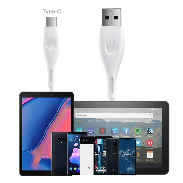 USB Type-C Data Cable 6 FT - White NEW FREE SHIPPING Features: Made for USB-C Devices USB-C to USB-A Cable Supports 3A Fast Charging High-Speed 480 Mbps Data Transfer Braided Nylon Construction Unrivaled Durability Incredible Bend Lifetime Extended 6ft Length