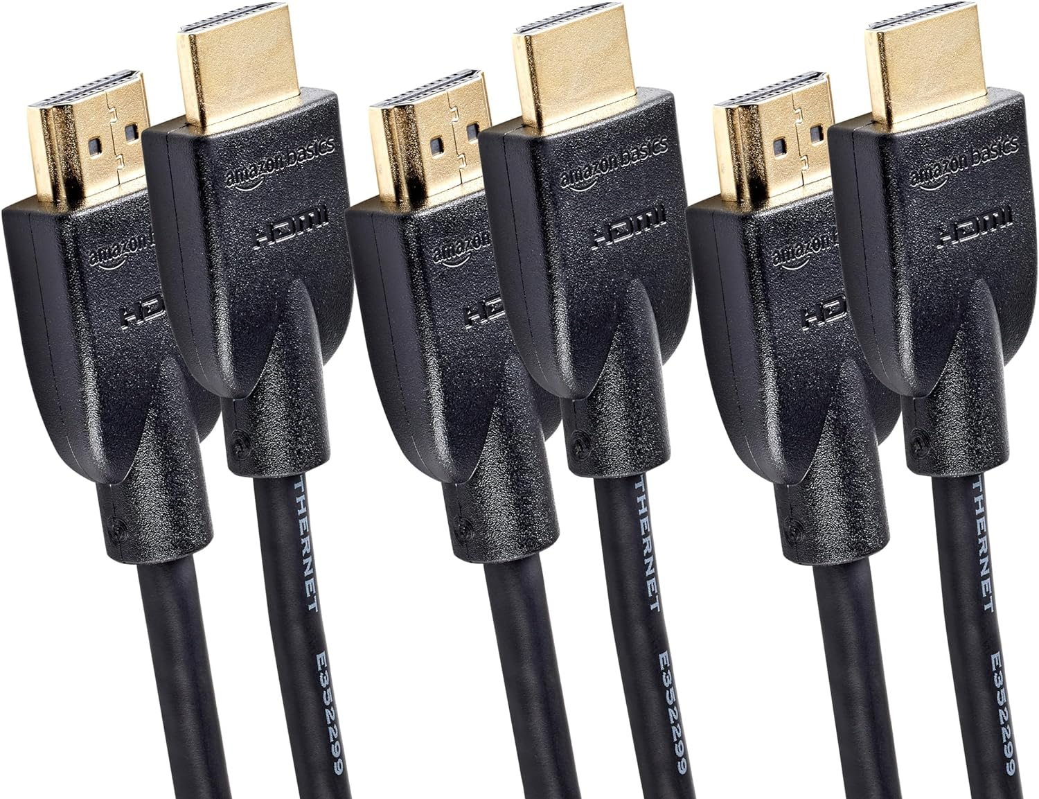 IN THE BOX: HDMI cable (A Male to A Male) for connecting 2 HDMI-enabled devices; 6 feet long in Black (3-pack) DEVICE COMPATIBLE: Connects Blu-ray players, Fire TV, Apple TV, PS4, PS3, Xbox One, Xbox 360, and computers to TVs, displays, A/V receivers, and more SUPPORTS 4K VIDEO: Supports 4K video at 60 Hz, 2160p, 48-bit/px color depth, as well as bandwidth up to 18Gbps, Ethernet, 3D, and Audio Return Channel (ARC) EASY CONNECTION: Share an Internet connection among multiple devices (no need for a separate Ethernet cable) BACKWARDS COMPATIBLE: Works with earlier versions to allow for use with a wide range of HDMI-enabled devices NOTE: This cable supports up to 4K@60Hz, so if a connected device's output is higher than that standard, the cable won't work properly Product Description Amazon Basics High-Speed HDMI Cable (18 Gbps, 4K/60Hz) - 6 Feet, Pack of 3, Black From the Manufacturer Amazon Basics