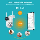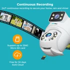 Powered & Connectivity: The wired security camera powered by cord, support 2.4G home wifi (not support 5G wifi) and ethernet connectivity Dual-Lens Linkage: Wireless WiFi security camera providing comprehensive coverage of large areas, the dual lens cameras eliminating blind spots and ensuring no activity goes unnoticed 2K Night Vision: outdoor camera allowing to clearly identify suspicious individuals even in low-light conditions, enhancing night-time security 360° View & Auto Tracking: Pan & Tilt outdoor cameras support aotumatic tacking to reduces the delayed response by intelligently following suspicious movement, ensuring immediate attention to potential intrude 24/7 Recording: Security cameras record all important moments while you focus on work or other things, allowing to watch and access them anytime and choose previous recordings by date SD Card & Cloud Storage: Cameras support SD card storage (not included, up to 512G), no mothly fee. Cloud storage is optional, incurs extra fee, data won't missing Two-Way Talk & Siren Alarm: Remote real-communications with other friendly visitors through the home security cameras. Scare off uninvited vistors by Siren and white light alarm