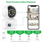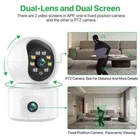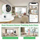 4K 6MP HD Smart Home Surveillance Camera Baby Monitor 2.4GHZ WiFi / 6MP HD / Dual Lens / Dual Screen/Auto-tracking / IR Night Vision / Cloud Storage Dual camera images on the same phone screen There are 2 video screens in APP, the upper one is PTZ camera and the lower one is camera fixed position camera. 4MP 6MP Comparison 4MP camera version:Means that the single lens is 2MP, so the dual-lens is 2MP+2MP=4MP. 6MP camera version:Means that the single lens is 3MP, so the dual-lens is 3MP+3MP=6MP. Smooth Pan and Tilt Monitoring What's more, you can slip your finger on screen to make the camera rotate UP/Down/Left/Right,monitoring anywhere you want. Automatic tracking After locking the target, the camera will adjust the pan rotation automatically, Tracking Moving Objects, Cars, Pets, humans, and push alert notifications to your Smartphone. AI Humaiond Detection & Alarm alert When abnormal activities is detected,the security camera will buzzing and send real-time movement alert to your phone app,email and record in the sd card . Clear Two-way Audio Built-in microphone and speaker,bring you real-time two-way audio. No matter how far away,you can use it to talk with your family remotely anytime. Infrared and Color Night Vision Equipped with high power LED lights, more than 10m IR distance, 24 hours monitoring ,the Surveillance Camera shows clearly during the day in color, and at night with infrared illumination is excellent and clearly visible in b/w. Support TF Card & Cloud Storage This camera Built-in a TF card slot, Support up to 128GB TF card and support the cloud storage , which means you can save video for later viewing. AP Mode (Direct Connection) No internet? Don't worry, you can connect the camera within 10 meters through AP mode, view the camera in real-time and make video recording settings Wall or ceiling mounting The Wifi Connection Can Be Removed From The Traditional Camera Wiring Trouble, Easy To Install To The Location You Want To Install. Multi-environment installation Package List 1x 4MP IP Camera 1x Power Supply 1x User Manual ( English Only) 1x Screws Features ● High Resolution : 4MP or 6MP pixel ● The latest version supports humanoid detection and auto-tracking; ● Smooth Pan and Tilt Monitoring:The camera head is rotatable with 355°pan and 90°tilt.You can control it via the app and get a sweeping view. ● Clear Two-Way Audio:The camera is built with a microphone and speaker.So you can talk to your kids via your smartphone remotely whenever you want. ● Work With 2.4G HZ WiFi:The camera only support 2.4G HZ Wifi, don't support 5G HZ WiFi ● TF card & Cloud storage:Supports micro SD cards up to 128 GB, and cloud storage(paid item, first month free) ● Real Plug and Play:By supporting a one-touch Wi-Fi connection function,not a single Ethernet cable is needed in the whole network connection process. ● Motion detection and Alarm Recording:Motion detection works perfectly with App Message Alarm (No photo). Make sure you are always the first one to get informed when things happen. ● Support Multi-user Viewing:Support Android iPhone IOS Smart Mobile Phone, Tablet,Laptop Use More Real-time Monitoring Terminal, Support 4 online visitors simultaneously. ● Support recording, and playback online from the iCsee app
