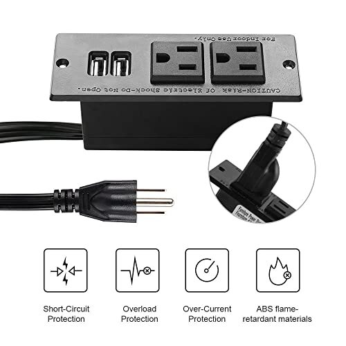 Conference Recessed Power Strip Socket with USB-A, 2AC 2USB black Product Details Conference Table Power Module - 2 Electrical Power / 2 USB Charging Connections. Recessed power strip with usb port,power output:120V/12A,USB ports:5V/2A, 6.5ft Standard Power Cord for the sockets. Easy to Install:Cut a rectangle in Table, place the Table Power Strip in then screw it tight.Hole cut size: L 3.8" * W 1.75" * H 1.5" . Maggie's table recessed power strip adopting anti-fire ABS ,PC materials and PVC copper cord. ETL /UL certified and in compliance with national standards of safety,unit is ideal for desks, tables, and benches with rear access. DescriptionRecessed conference power socket with usb portsBrings an AC outlet and a duplex USB outlet to your work surface for convenient power & charging.Ideal for any desk or work surface as well as most upholstered furniture.Convenience outlets are perfect for stationary accessories like lamps, computers, or monitors which do not need to be accessed often allowing more room to plug in temporary devices like laptops, tablets, and mobile phones above the work surface where they are more easily accessible.Specifications:-2 Ground Power Outlets, 120V/12A-2 USB Power Port Connections,5V/2A-Power cord:6.5 ft long-Hole cut size = L 3.8" * W 1.75" * H 1.5"Package Includes:1 x recessed power strip with usb port