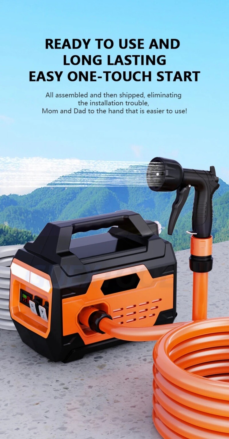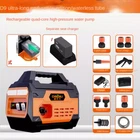 Product name: Portable quad core water pump Standard voltage: 24VDC Water outlet distance: not less than 100 meters Suction lift: ≥ 3 meters Battery display: Yes Product size: 320 * 184 * 270mm