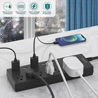 6ft Extension Cord USB Surge Protector Power Strip with USB Ports 6 Outlet Plugs Product Description 12 IN 1 : 6 USB charging ports and 6 outlets/sockets in one power strip which allow you charge 12 devices at the same time, suitable for most phones, tablets and other appliance. SURGE PROTECTOR : Advanced built-in surge protector module can prevent the damage of your devices from the power surges, thunder and lightning. SMART & FAST : The USB ports (5V/2.4A each) will detect your devices automatically and quick charge speed up to 2.4A. MULTIPLE PROTECTION : All charging ports of the electric strip comes with high-current, over-load and short-circuit protection for 100% safe charging. QUALITY GUARANTEED : The power strip with USB is certified by FCC, RoHS, made of fire-resistance PC shell and 100% copper wire Features 1. AC Output Rated: 13A, 125V, 1625W; 2. 6 USB Outputs: 5V/2.4A*6; 3. Sockets: 6 US standard AC outlets + 6 USB Ports; 4. Material: Fire-resistance PC shell and 100% copper wire; 5. 6 feet heavy duty extension cord; 6. Features: Surge protection, over-load protection and short-circuit protection. W hat's in the Package - 1 Pc x 6ft Extension Cord Thank you for shopping at our store.