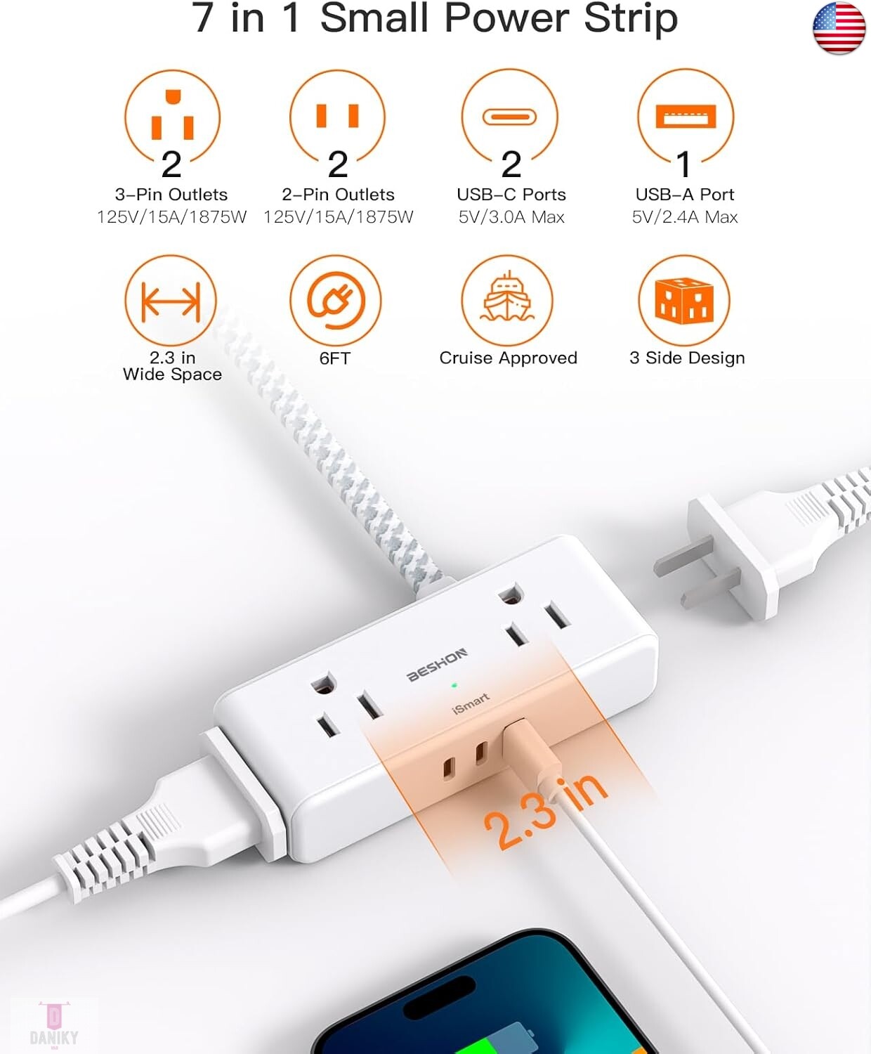 Products Account Store Contact Flat Extension Cord 6 feet, Flat Plug Power Strip, 4 Widely Outlets with 3 USB Ports (2 USB C), 3 Side Outlet Extender with Extension Cord with Multiple Outlets for Home, Office, Dorm Room Essentials Product description Trusted seller 24 hour response Fast and free shipping Product description About this item Extension Cord 6 Feet & Ultra Thin Flat PlugWith only 0.35 inch ultra thin plug and 45°right angle design, the flat plug power strip is much thinner than traditional plugs, which can close to the wall easily, and hide in the back of furniture, bed or refrigerator. The 6ft extension cord is made of pure copper, with better current carrying capacity (15A). The braided power cord is not easy to deform, is durable, and more safer. 7-in-1 Power Strip with USB PortsFlat power strip could turn 1 socket into 4 AC outlets, 2 USB-C, and 1 USB-A, which could charge up to 7 devices at the same time. The USB C port can charge up to 5V/3A. USB-A ports can charge up to 5V/2.4A Max, all USB Ports Output is 5V/3.1A, compatible with your cellphone, laptop, tablet, earphone, or camera. 2.3 in Wide Spaced & Space-SavingThe extension cord with 2.3 inches widely spaced between outlets, larger than the standard socket, fits big adapters without blocking each other. The compact power strip saves more space, makes the table look neat, and is suitable for the home, office, and college dorm room. Cruise Accessories Must Haves The small cruise power strip with NO surge protection. The compact size (4.5*1.1*1.8 IN) takes up less space on your desk or luggage, a must have accessory for travel, dorm room, home, office, bedroom, kitchen, etc. Multi Safety ProtectionRoHS, FCC, and ETL Certificates. This extension cord with multiple outlets has overload protection, short-circuit protection, over-current protection, over-voltage protection, and overheating protection. See more product details Specifications SECTION / FAMILY Power Strips & Surge Protectors > Power Strips + INFO orts (2 USB C), 3 Side Outlet Extender with Extension Cord with Type Flat Extension Cord Color Neutral Material Apto SKU 2006 Shipping policies Return policies Payment policies Contact Shipping policies: We only ship to United Kingdom. We can not combine shipping. There is no local pick up. We ship all items directly from our supplier within 1 to 3 business days. Most of the items are delivered within 3-5 working days however in some cases the delivery time may be from 3 to 10 days, if it is the case please contact us to follow up on time to locate your shipment. All items are in stock when advertised. The inventory is updated and monitored regularly. However, if the demand exceeds our supply and there is a stock break we will give the customer the following options: Full and immediate refund Send the product to the customer when it becomes available again Offer the customer a product of similar style and quality. Your offer/purchase of the item implies that you agree to this policy. If you have a question about a product that is not answered in the description, please contact us via Ebay message and give us the opportunity to help you as well as to show you that we can become your supplier Trust and make sure we have what you are looking for. Return policies: We guarantee your satisfaction! If for some reason you are not satisfied with your item, you simply have to return it within 14 days for a full refund, less shipping cost. Please contact us before initiating the return so that we can issue a return authorization. IMPORTANT! If at the time of picking up your package you see that there is a knock, bulge or strange shape, let the carrier know so that you can record it, otherwise we can not take care of breakages that are not manufacturing. Thank you for your cooperation. Payment policies: We accept payment by any of the following methods: PayPal Pay as soon as possible after buying, as this will allow us to send your item sooner! Contact us: Customer satisfaction is very important to us. If you have any problems with your order, contact us and we will do everything possible to make you satisfied. We guarantee that your problem will be resolved quickly. Whenever you are satisfied with your purchase, please leave us a positive evaluation. Your comments help us keep our prices low on eBay. Products relateds -31 % $19,99 $28,99 Power Strip Surge Protector - 6 Widely Outlets with 3 USB Ports (1 USB C), 3-Side Outlet Extender Strip, 5 Ft Extension Cord Flat Plug, Wall Mount Small Power Strip for Travel Home Office College Dorm -30 % $20,99 $29,99 Flat Plug Power Strip, Ultra Thin Extension Cord - Addtam 12 Widely AC 3 Sides Multiple Outlets, 5Ft, 900J Surge Protector, Wall Mount, Desk Charging Station for Home Office Dorm Room Essentials Copyright © ¡Gracias por tu visita!