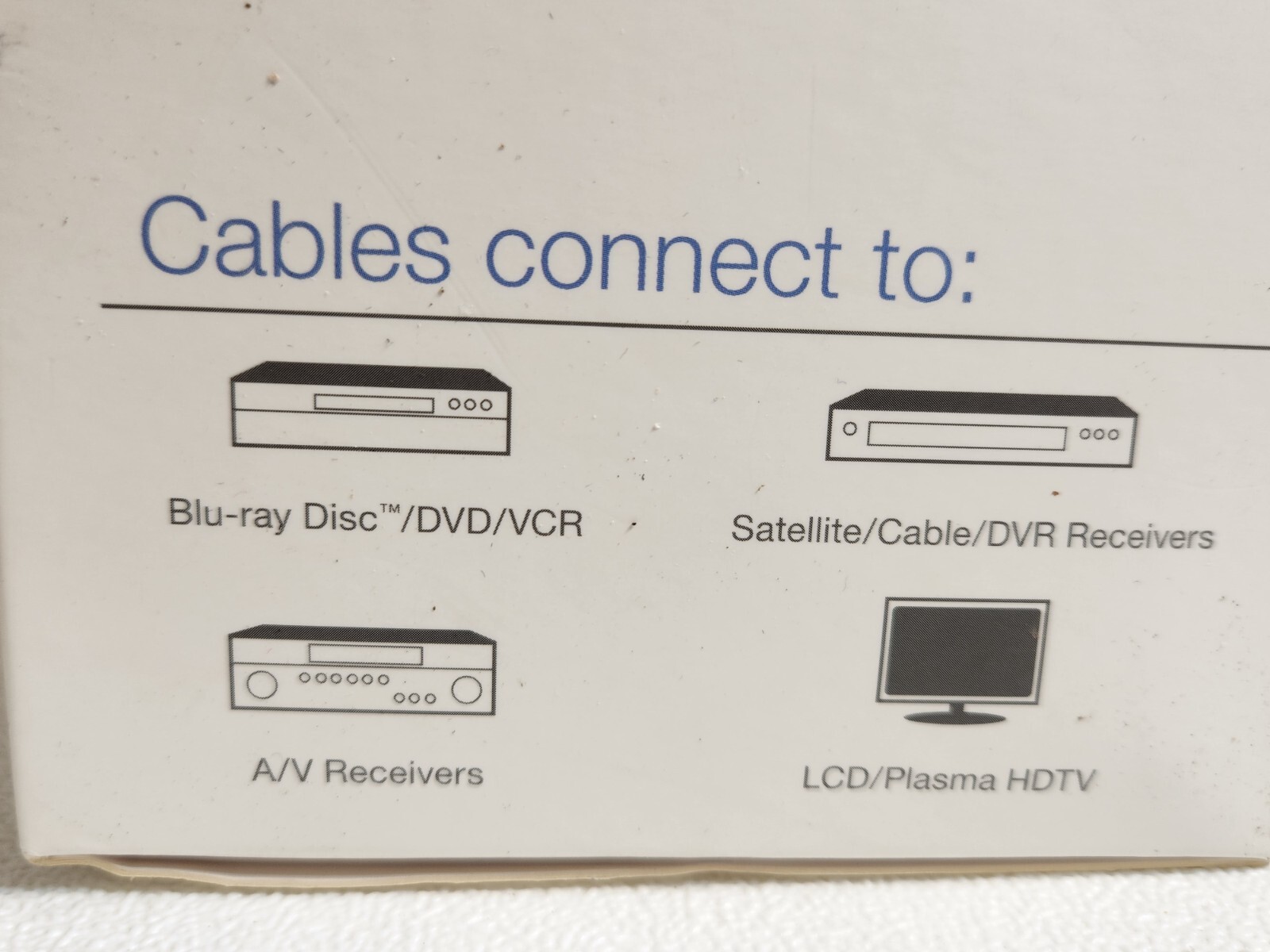 Ships SAME DAY or next business day! HDMI Cable Connection Kit 6 Ft V1.3a High Speed SEALED Set of 2 by Zip FastShp SEALED 6 Ft. HDTV cable kit HD 1080p compliant Connects to: Blue-ray/DVD/VCR, A/V Receivers, Satellite/Cable/DVR Receivers, LCD/Plastma HDTV Includes: *HDMI Cables (6 feet, quantity of 2) *Component video cable - 6 ft. *RCA stereo audio cable- 6 ft. *RCA Audio/Video cable- 6 ft. *Toslink digital audio cable - 6 ft.