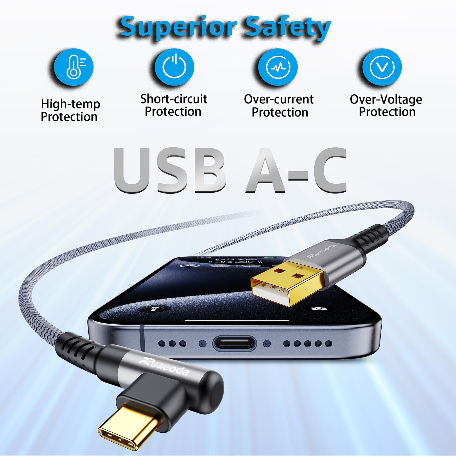 USB C Cable 6 ft,2Pack 3.1A Type C Charger Fast Charging Cable, USB A to USB C 3A Charger Durable Nylon Braided Car Carplay Cable for i'Phone 15 15 Pro Max 15 Plus Cable Product Details Size: 6Ft 2Pack Brand: Ruaeoda MPN: rR-107 UPC: Does not apply EAN: Does not apply Brand: Ruaeoda Connector Type: USB Type C, USB Type A Cable Type: USB Compatible Devices: Galaxy S10 S9 Plus S21, Note 10 9 A51 LG G8 G7 Special Feature: Braided Package Dimensions : 6.18 x 3.7 x 0.67 inches; 2.4 ounces Item model number : rR-107 Date First Available : December 19, 2023 Manufacturer : Ruaeoda Country of Origin : China Best Sellers Rank: #984 in USB Cables Customer Reviews: 4.7 4.7 out of 5 stars 280 ratings DURABLE & HEAVY DUTY: Strong military fiber, the most flexible, powerful and durable material, makes tensile force increased by 200%. Special SR design, can bear 30000+ bending test. Premium Aluminum housing makes the cable more durable.Premium nylon braided type c cable adds additional durability and tangle free. Certified 3.1A Fast Charging & Sync Speed:Ruaeoda USB Type C Cable supports fast charging up to 9V/3.1A (40% faster) compared with other cables which provide 5V/2.4A output. And data transfer speeds up to 480Mbps. *Please note: 1.This cable can charge G00gle pixel 2/3/3XL normally, but it may not deliver fast charging speed. 2. Using an adapter of at least 5V/2A if charging for i,Pad. Enhanced Cable Durability: USB to USB C Cable has electronic safety certifications that comply with appropriate standards, it built-in laser welding technology, which ensure the metal part won't break. 56k resistor provide outstandingly reliable conductivity &stability and protect your devices and charging adapters from damage. Build in Emark Chip: This usbc to usbc cable has a built-in SUPER E-MARK chip, which will intelligently identify the charging device and its charging power, thus adjusting the appropriate voltage and current to provide the fastest fast charging power without overloading and protecting your device's battery. It also detects when the battery power reaches 80% and turns on the trickle mode to effectively extend the life of the battery and the device. Perfect Compatibility:Ruaeoda USB C to C Cable Compatible with virtually all USB-C devices including phones, tablets, and laptops. Such as MacBook Air/Pro, i`Phone 15/15 Plus/15 Pro/15 Pro Max, S`amsung Galaxy S23 Ultra/S23+/S23/S22 Ultra/S22+/S22/S21 Ultra/S21+/S21/S20/ S20+/S20 Ultra/Note 20, Pixel series, i`Pad Mini 6, i`Pad Pro, Air, Steam D`eck, S`witch and more upcoming devices with USB-C port.
