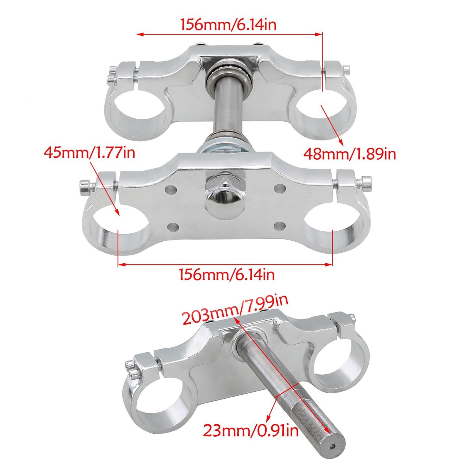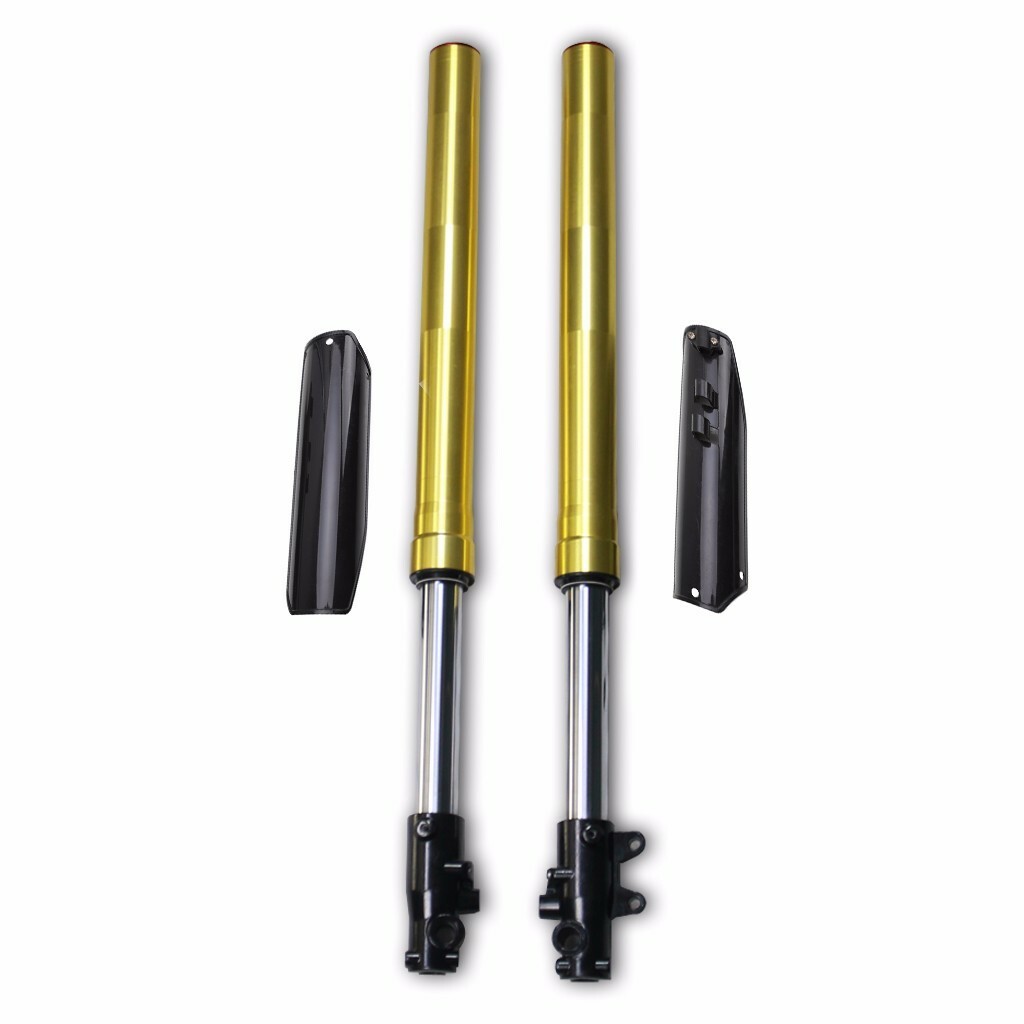 Front Shock Absorber Fork 110cc 125cc 150cc Chinese Dirt Bike Size Spec: Length -- 735mm (from leg top to wheel axle centre) Upper Leg Diameter -- 45mm (Triple Clamp Inner Diameter should be 1-1.5mm bigger than this figure) Lower Leg Diameter -- 48mm Fit: Chinese motor bike: Tianzhong, Zongshen, TTR, Taotao etc.. as picture shows. COMPLETE TRIPLE CLAMP SET To fit upside down front forks. Fits Small & Midsize & Bigwheel Chinese Pit bikes Centre Pole: 203mm Bolt distance: 156mm 45mm top clamp, 48mm bottom clamp Bearing size : 41-22.5-24mm Please check the size before purchase. IMPORTANT!! Package: A pair of Front Fork Assembly 1x triple tree inkfrog terapeak Listing and template services provided by inkFrog