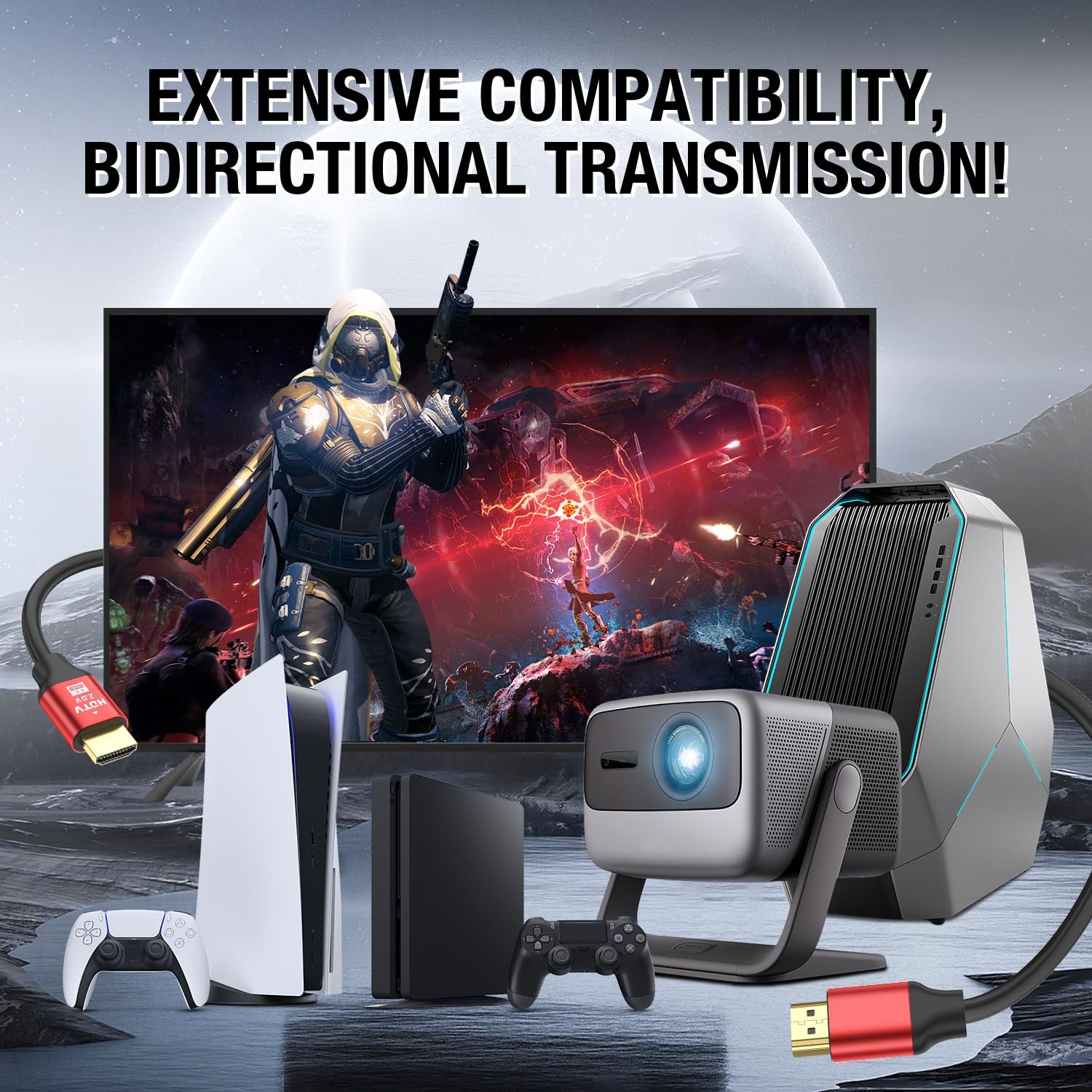 4K Hdmi Cable 75FT, High Speed Hdmi 2.0 Cable 4K@60Hz 2K@120Hz, Gold-Plated Connector 3D ARC HDCP 2.2 &2.3 for HDTV/Blu Ray Playback/Projectors/Laptops/PS4/PS5(Red) -[The most suitable design for office meetings]: This 4K HDMI cable adopts high-end technology and supports 4K@60Hz and 2K@120Hz The resolution and refresh rate are high, with a transmission speed of up to 18Gbps bandwidth. The signal source processing is very precise, presenting color details well and also showcasing unique dynamic effects. -[Home Theater Companion]: The 4K HDMI cable we use supports the latest high bitrate audio formats, including DTS Master and DTS: X. By utilizing advanced audio signal control, the audio feedback channel (ARC) has been enhanced, allowing for a three-dimensional viewing experience of Dolby panoramic sound and visual field, and an extremely delicate auditory visual experience. -[Wide compatibility]: Our HDMI cable is suitable for all electronic devices with HDMI interfaces and is backward compatible with HDMI 1.4, 1.3, and 1.2 standards. Such as Roku TV, HDTV, PS5/PS4/PS3, X-box series X/One, laptops, DVD/Blu ray players, projectors, etc. -[4K@60Hz Gaming: HDMI 2.0 cable designed specifically for gaming enthusiasts, providing ultra smooth 2K@120Hz Game graphics. The latest game mode that supports variable refresh rate (VRR) achieves fast media switching (QMS) and new rate refresh rate, without delay, motion blur, and frame tearing. It has good smoothness and no delay when playing games, making the virtual reality presented during real-time interaction more realistic. -[High quality and after-sales service]: The 4K HDMI cables here combine every precise component together. Each cable and component is rigorously tested in the factory and presented to you after passing all parameters. If you have any questions during use, please feel free to contact us at any time!