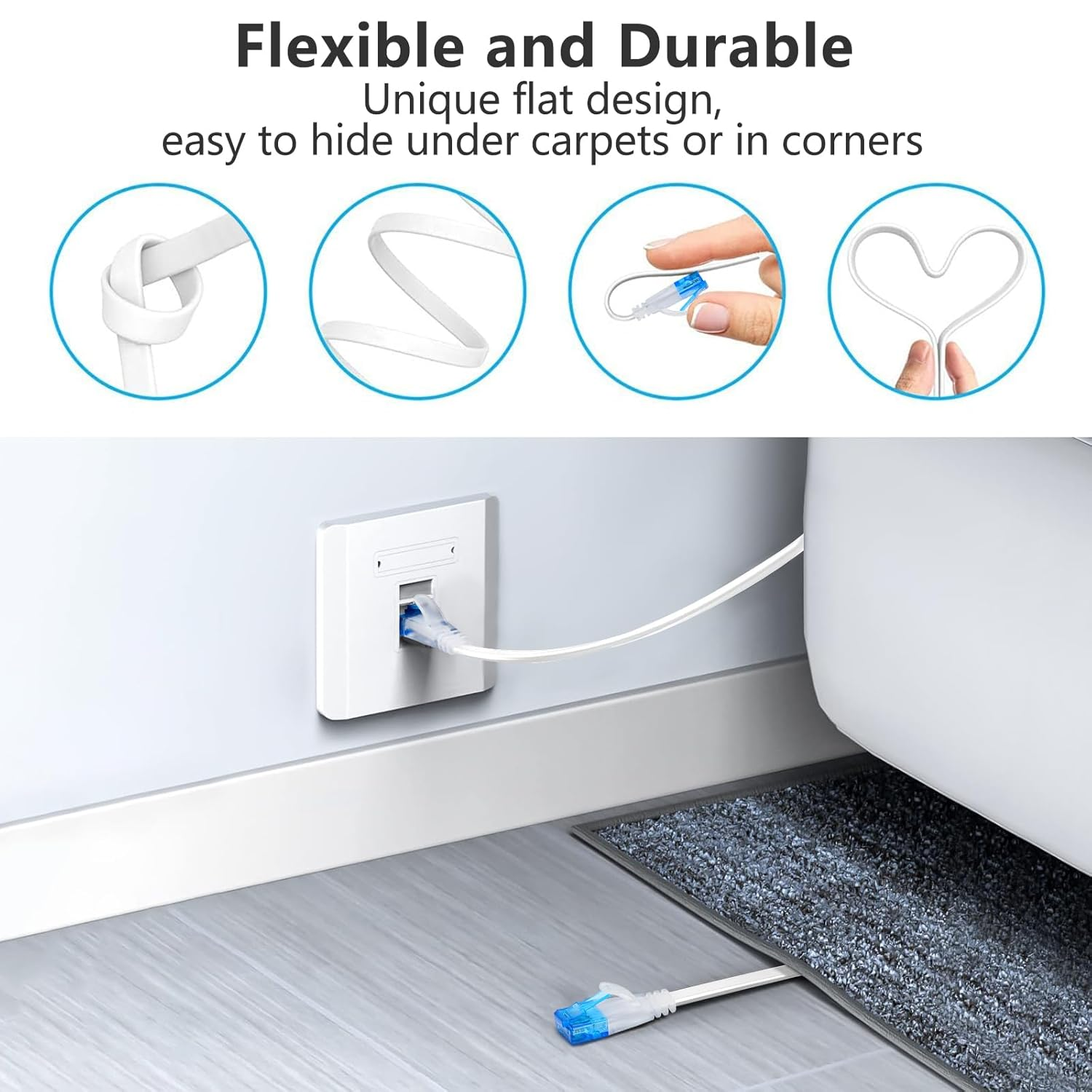 This Ethernet cable is a game-changer for my home setup! The 75-foot flat design makes it super easy to route without bulky tangles, and the gold-plated connectors deliver a rock-solid connection with zero lag. I love that it supports ultra-fast speeds up to 1Gbps—perfect for streaming, gaming, or heavy downloads. The durability is impressive too; the reinforced connectors resist wear even with frequent unplugging. No more dropped signals or frustrating interference. If you need a reliable, high-performance cable that won’t clutter your space, this one’s a winner!