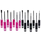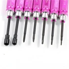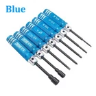 Features: 1 7PCS different Screwdrivers: straight, cross, 1.5 2.0 2.5mm hex, 4.0 5.5mm hex sleeve screwdriver, just one set to fulfill your needs. 2 Standard size: easy to install or take off different typies of screws. 3 Light weight and nice handle: hollow handle design, easy to carry and use. 4 Made of high quality metal material: not easy to get rusty or abrasion, durable for use. 5 Suitable for different rc models: helicopter, car, aircraft, racing drone and so on. Specifications: Color: Blue/Black/Pink Optional Diameter of handle: 8mm Tips Material: Steel Handle Material: Aluminium Hex Screwdrivers Size: 1.5 2.0 2.5mm Nut Driver Size: 4.0 5.5Box Phillips Screwdriver Size: 0# 1# Total Length: 110mm Length of handle: about 60mm Weight: about 18g/pcs Package list: 1 * 1.5mm Hex Screwdriver 1 * 2.0mm Hex Screwdriver 1 * 2.5mm Hex Screwdriver 1 * 1#- Phillips Screwdriver 1 * 0#+ Phillips Screwdriver 1 * BOX4.0mm Nut Driver 1 * BOX5.5mm Nut Driver