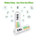Feature: 1. 100% Brand new and high quality. 2. t is 4 in 1 EBL AA 2A rechargeable NI-MH 2800mAh replacement battery. 3. The latest lock electric technology are adopted. 4. Nimh environmental protection material. 5. Rechargeable battery, up to 1000 recharge cycles. 6. Excellent high discharge/drain performance 7. Exact replacement for standard AA size batteries 8. Superior performance under low temperature condition 9. Longer in high drain devices than Alkaline batteries. 10. Can be commonly usedd for for high power demend devices such as Digital Cameras, CD Players, Remote Control Vehicles, Metal Detectors, PocketFlashlights, PDAs Palm Pilots, Pagers, Game Boys, Children's Toys and so on. Specification: 1. Capacity: 2800 mAh 2. Voltage: 1.2V 3. Battery type: AA R6 4. Chemical Composition: Ni-MH 5. Total Weight: 110g Package Included: 80 x EBL 2800mAh AA R6 Ni-Mh rechareable batteries NOTE: 1. Old and new batteries or different kinds type of battery don't mixed use. 2. The battery must be fully charged before first use, about 20 hours. 3. The battery is stored in a cool and dry place. 4. Do NOT Separation, extrusion,and impact. 5. Do NOT put battery into water and fire. 6. Keep away from children.