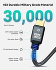 【Certified 8K HDMI Cable】The 8K HDMI 2.1 cable has received HDMI 2.1 certification.It supports 8K@60Hz, 4K@240Hz/144Hz/120Hz and a wide range of resolutions, including 5K and 10K, for immersive viewing and smooth fast-action details. It is backward compatible with all previous HDMI versions, such as HDMI 2.0/1.4/1.3. 【48Gbps Ultra High Speed】Supports ultra high-speed transfer rate up to 48Gbps. It features exceptionally low EMI (electromagnetic interference), which reduces interference with nearby wireless devices. All our 8K HDMI 2.1 cables are compatible with all kinds of HDMI devices, such as Playstation, Switch, 8K 4K UHD TV, Laptop, PC, DVD player, PS5, PS3, PS4, Blu-ray player, projector, AV receiver, cable box, and more. 【Supports Dynamic HDR】Dynamic HDR support ensures that every moment of a video is displayed at its ideal values for depth, detail, brightness, contrast, and wider color gamut - on a scene-by-scene or even frame-by-frame basis. 【Impressive Audio & Video】The latest HDMI 2.1 cables support a full range of HDMI audio, including HD Dobly 7.1, DTS-HD Master Audio and Dobly Atmos, enhancing each moment's values for depth, detail, brightness, Variable Refresh Rate (VRR) and Quick Frame Transport. It also supports 3D, HDCP 2.2 & 2.3. 【Ultra Durable & High Quality】Our 8K HDMI cable is constructed with high-speed 24K gold-plated connectors, bare copper conductors, durable nylon braided jacket to minimize signal interference and ensure longer life. With its triple shielding, it can withstand more than 30,000+ 90-degree bends. This makes it durable enough for your everyday use. Support Various HDMI Devices Confirm if the signal or multiple HDMI ports on your device support 8K or eARC before connecting,refer to manual or go to the official website. Up to 48Gbps Bandwidth 2.5x the Bandwidth of HDMI 4K Our 8K HDMI cable is support 48Gbps of bandwidth for delivering full 8K UHD features. HDMI 8K = 48 Gbps HDMI 4K = 18 Gbps 4 Layer Shielding Data transmit is faster and stabler than 99% of other hdmi cables on the market. Features ultra low EMI TMDS ,reduces Interference of nearby devices. 10X Flexible & Durable Manufactured of only top-grade materials and components. MIlitary Grade Nylon Braided 30,000+ Bend Test 100% Pure Copper Conductors We are confident in 8K HDMI 2.1 Cable: HDMI Version HDMI 2.1 Version,backwarks with the earlier HDMI 2.0a/2.0b/1.4/1.3 Version Support Resolution 8K@60Hz,4K@240Hz,4K@144Hz,4K@120Hz,4K@75Hz,4K@60Hz,2K@240Hz,2K@144Hz,2K@120Hz,2K@75Hz,2K@60Hz,1080p@240Hz,1080p@144Hz,1080p@120Hz,1080p@60Hz,1080p@30Hz For Game 48Gbp/s HIgh Speed,Variable Refresh Rates(VRR),Auto Low Latency Mode(ALLM),Quick Frame Transport(QFT),Quick Media Switching(QMS),Optimizes Graphics and CPU Performance.NOTE:8K requires at least 3060 series graphics cards or above For Home Theater/Soundbar Dolby Atmos,Dolby AC-4 Audio,DTS:X,LPCM 7.1,Display Stream Compression(DSC),Auro-3D,eARC,HDR10+,12-bit,HDCP2.2&2.3 Compatibility Devices Including but not limited to :Apple TV,Fire TV,Roku TV,Sony,Samsung,TCL,LG,Hisense,PS5,PS4,X-BOX Series X,X-BOX Series S,Nintendo Switch,RTX1650,RTX3060,RTX4090,and any devices with HDMI