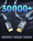 Really 8K HDMI 2.1 Cable : 8K HDMI cable supports 48Gbps high speed transmission bandwidth and high resolutions to 7680 x 4320, high refresh rate to 8K 60Hz, 4K 120Hz 144Hz. HDMI 2.1 cord supports optimal bandwidth and speed High Speed HDMI Cable for Gamer : Our Braided HDMI 2.1 cable supports for 8K HD image and Variable Refresh Rate(VRR), making image switching smoother, image clearer, and tearing and lag eliminated. HDMI cable 2.1 supports for Dynamic HDR, HDCP 2.2 2.3, DTS:X, eARC, ALLM, QFT, QMS, 3D video Display and 12-bit color processing technology. HDMI 2.1 cord brings you an immersive movie watching and gaming experience Stable Transmission and Sturdy : 24K Gold-plated connectors and aluminum shell provide better connect and heat dissipation. Our HDMI cord is with multi-layer shielded and thick copper wires, effectively protecting against interference and ensuring more stable signal transmission. Nylon braided prevent tearing and withstands up to 10,000 times break tests Universal Compatibility : This 8K HDMI cable is compatible with the devices with HDMI port, such as projector, laptop, television, computer and so on. It is also backward compatible with HDMI cables 2.0/1.4/1.3/1.2/1.1 What You Get : With 8K HDMI cable 30 ft 1Pack . is strict in production process for our HDMI cable, which make us provide better products