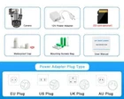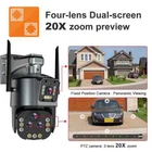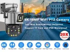 8K 16MP 20X Zoom Wireless PTZ Wifi Two Way Audio CamAI Auto Tracking Outdoor Waterproof 100m Security Four Lens 360° PTZ Camera 8K Version Comparison: 8K camera, meaning four lenses, each with 4MP, 4MP+4MP+4MP+4MP=16MP Main Features: - 8K camera has an ultra wide angle+20x hybrid zoom, 4K camera has an ultra wide angle+10x hybrid zoomachieving clear monitoring of far and near distances; - 8K / 4K two resolutions for you to choose. Ultra high definition graphics bring you a higher definition visual experience - 4K Resolution: Pixels of each lens are 4MP, 4MP Lens + 4MP Lens= 4K - 8K Resolution: Pixels of each lens are 4MP, 4MP Lens + 4MP Lens + 4MP Lens+ 4MP Lens = 8K - Equipped with a high gain enhanced 5dBi antenna, your camera can receive a wider range of signals; - Built in infrared LED and white LED, presenting clear and colorful day/night images for you; - 3 image modes: smart mode/infrared mode/color mode, - Infrared mode is infrared on mode. The image is black and white, the white LED is off Color mode: white LED lights up, day and night are color vision; - 24/7 motion detection; Real time push to protect your family safety; - Built in high-quality speakers and microphones for unobstructed two-way conversations,; - Echo suppression and cancellation and noise suppression technology, perfect full duplex voice effect; - Supports 2.4GHz WiFi connection (does not support 5G WiFi); Support RJ-45 network cable connection; - Real time image transmission, adaptive network; - APP: IPC360 HOME Schematic diagram of 8k camera packaging: 1x PTZ Camera 1x User Manual 1x Power Supply 1x Screws Bag The packaging of the dual lens 4K camera is as follows: 1x PTZ Camera 1x User Manual 1x Power Supply 1x Screws Bag 20X Zoom Function - Press and hold the screen with both hands to Zoom in/out and see more details. Multi-Lens and Dual Screen There are 2 video screens in APP, the upper one is PTZ camera and the lower one is camera fixed position camera. You can click the position you want to enlarge in the video of the fixed camera, and the 25mm lens PTZ camera will move to the specified position. Clear Two Way Audio Camera is built with microphone and speaker. So you can talk to your kids via your Smartphone remotely whenever you want Color Infrared Night Vision supports full-color mode, infrared mode and double-light alert mode (infrared night vision is displayed when no object moves, and the white light will be turned on to switch to full-color mode after motion is detected). AI Auto Tracking When someone passes through the alarm area, the camera will detect the person's movement. And track people. Ai Human Detect Alert Quickly finds human targets and immediately sends a notification to your phone, letting you see what happens anywhere. It only detects the human shape and will not trigger falsely for objects such as cars and trees. Pan and Tilt Security Camera Horizontal 355 ° and Vertical 90 ° rotation range creates full 355 ° coverage IP66 Waterproof / Dustproof The camera is equipped with IP66 case , which is waterproof, sun-proof and dust-proof. It is suitable for any environment. Wifi Connection & LAN Connection Powered by DC12V adapter, you can connect the camera to Wi-Fi network. you can setup wifi connection of the camera or LAN Search with network cable connected to router, work with 2.4G wifi only Flexible & Secure Storage Options The camera supports up to 128GB TF card local backup and also provides cloud storage service(Need to pay extra cost) App Remote Access - Camera supports to connect to IOS, Android. You can easily realize free connection with the camera in mobile .