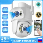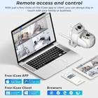 Dual-Lens with Dual Screen Bluetooth Connection PTZ WIFI Camera Dual lens, Dual screen, Notifications alarm, humanoid tracking, two way voice intercom 360 monitoring, full color night vision, IP66 waterproof, mobile phone remote monitoring,Share video, SD card storage, 24 hours video recording Main Features: - Dual light source design, built-in infrared light + white light, night vision infrared and night vision full color can be set; - Pan Tilt Move: Bottom Lens: Horizontal: 270 degree; Vertical: 90 degree. - 2.4G WIFI + RJ45 network port for Internet access; - Support TF storage and cloud storage (need pay in iCSee app); - Two-way voice intercom, two-way video synchronous recording and playback - Humanoid detection Smart Alert: Motion Triggered with Alarm, APP Push notifications and Alarm recording - Auto Tracking: When ip camera detects object moving, it will auto move follow the object. -Smart Phone APP name: "iCSEE" from Google Play or iOS APP Store Packing List: 1x PTZ Camera 1x User Manual 1x Power Supply 1x Screws Bag You might need such extension cable This cable is not included , if you need , you could click this image to buy one directly !!!! 4MP 8MP comparison 4MP camera version: Means that the single lens is 2MP, so the dual-lens is 2MP+2MP=4MP. 8MP camera version: Means that the single lens is 4MP, so the dual-lens is 4MP+4MP=8MP. Dual Lens and Dual Screen -There are 2 video screens in APP, the upper one is fixed position camera and the lower one is PTZ camera. 270° Pan & 90° Tilt Rotate -Due to the horizontal 270° and the vertical 90 °, you can remotely control the wifi outdoor camera to view every corner via your mobile phone. Real Two Way Audio -Built in microphone and speaker,support real time video,which allows you talk with your visitor in real time wherever you are. Smart Night Vision -Built -in White LED and IR LED, you can choose color night vision or infrared black and white night vision. IP66 Waterproof / Dustproof -The camera is equipped with IP66 case , which is waterproof, sun-proof and dust-proof. It is suitable for any environment. AI Human Detection Alerts -Quickly finds human targets and immediately sends App notifications to your phone so you can see what's happening anywhere. AI Auto Tracking -When someone passes through the protected area, the camera will detect the person's movement and follow the person. Support TF Card Storage and Cloud Storage(Need Pay For) -The camera supports up to 128GB TF card local backup and also provides cloud storage service(Need to pay extra cost). 2.4Ghz Wifi Connection & LAN Connection -Powered by DC12V adapter, you can connect the camera to Wi-Fi network. you can setup wifi connection of the camera or LAN Search with network cable connected to router, work with 2.4G wifi only (Does not support 5G). ICSEE App Remote Access -You can get a live broadcast of the capture video anytime, anywhere. Supporting Multiple Users watching live video at the same time via phone APP.