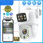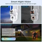 Warm Advice We recommend that you buy an 8 MP camera, the camera's picture quality is better and more cost-effective! If you want to store video, please choose to buy a camera with card 8MP 4K Wifi Camera Dual Screens Wide View Surveillance Camera Outdoor Night Vision ①8MP 4K/4MP Dual Lens Dual Screens Wifi Camera ②AI Human Detection,auto tracking,IR/Color Night Vision,ICSEE APP P2P Remote ACCESS,Alarm Push,SD Card Video Surveillance,Two ways Audio.IP66 Waterproof ③wifi connection,RJ-45 Cable Connection,Bluetooth Connection ④Support ONVIF(but not support all NVR) ⑤Good Service:Reply within 24 Hours 4X Digital Zoom ①Tap the rotate button to rotate the screen ②Select one of the screens to tap continuously to enter single screen ③press and hold the screen with both hands to Zoom ④Tap the screen continuously to return to single screen Note: The camera only supports zoom when the phone is in landscape mode 8MP 4K /4MP Wifi Camera 8MP 4K Camera = 4MP LEN + 4MP LEN 4MP Camera =2MP LEN + 2MP LEN The Top Len is Fixed,the Bottom Len is PTZ Product Description ● 8MP 4MP Resolution Option ● Dual-Lens with Dual Screen ● AI human detection Alarm ● 3.6mm(fixed len) + 3.6mm (ptz len) Dual lens camerasystem ● 20~25 meters Colorful/Black White Night Vision ● Enhanced dual antenna penetration ability ● Pan 270 degree/ Tilt 90 degree ● Two-Way Audio Talk Speak Real Time ● Motion Detection and Alarm Tone Function ● 2.4Ghz WiFi & Bluetooth & Wired Connection three Mode ● AP Hotspot Mode Access ● Waterproof IP66 Use for Outdoor ● TF Card Slot Support Max 128 GB. ● Encryption security cloud storage ● Remotely View via the App iCSee on Smartphone ●Good Service:If there are any issues with the product, please feel free to contact us and we will reply to you within 24 hours. Please do not worry Package Listing 1x Dual Screens PTZ Wifi Camera 1x User Manual 1x Power Supply 1x Screws Bag 1x Waterproof Lid Warm tips: the SD Card is optional :) PTZ Remote Control Wifi Surveillance Camera Support Rotates 270° Horizontally and 90° Vertically, You can control it in the ICSEE app directly whenever you want and wherever you are. Ai Human Detect Alert Quickly finds human targets and immediately sends a notification to your phone, letting you see what happens anywhere. It only detects the human shape Moving Auto tracking After locking the target, the camera will adjust the pan rotation automatically, Tracking Moving Human and push alerts notifications to your Smartphone. Color Infrared Night Vision ① full-color mode, ② infrared mode ③double-light alert mode (infrared night vision is displayed when no object moves, and the white light will be turned on to switch to full-color mode after motion is detected). Real Two Way Audio Built-in microphone and speaker / Customized new speakers with loud volume; You could talk to anyone nears the camera ( Warn someone to leave your house ). IP66 Waterproof / Dustproof The camera case is made of high-quality ABS plastic, which is waterproof, sun-proof and dust-proof. It is suitable for any environment. Three connection modes ① RJ-45 Cable connection ② Wifi connection(2.4G HZ WIFI) ③Bluetooth connection iCSee APP Remote Access Easy remote access to get what happens when you left home SD Card & Cloud Storage First month cloud storage and Max 128G SD card Record ,data security is more stable . If you want to keep using Cloud Service, you just need to pay for it , if you don't need to use , it will stop it automatically when you don't pay for the fee. How to Configure the Camera in the iCSee App ① Download icsee app from Google Mall or other software malls ② There is a reset button at the bottom of the camera. Press and hold the reset button for 10 seconds. When you hear the sound of a successful reset, the camera has been reset successfully. ③ Connect the camera through the 2.4G HZ Wifi network band, follow the 6 steps in the picture to connect, and you can configure it successfully.