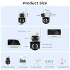 Dual-Lens with Dual Screen Auto Tracking PTZ WIFI Camera Dual lens, Dual screen, Notifications alarm, humanoid tracking, two way voice intercom 360 monitoring, full color night vision, IP66 waterproof, mobile phone remote monitoring,Share video, SD card storage, 24 hours video recording. Main Features: - Dual lens camera. Top Lens is 3.6MM; Bottom Lens is 3.6MM - Dual-lens dual-sensor dual-screen, wide-angle Viewing + Long Distance Viewing to achieve clear monitoring from far and near; - Dual light source design, built-in infrared light + white light, night vision infrared and night vision full color can be set; - Pan Tilt Move: Bottom Lens: Horizontal: 270 degree; Vertical: 90 degree. - 2.4G WIFI + RJ45 network port for Internet access; - Support TF storage and cloud storage (need pay in iCSee app); - Two-way voice intercom, two-way video synchronous recording and playback - Humanoid detection Smart Alert: Motion Triggered with Alarm, APP Push notifications and Alarm recording - Auto Tracking: When ip camera detects object moving, it will auto move follow the object. -Smart Phone APP name: "iCSEE" from Google Play or iOS APP Store Packing List: 1x PTZ Camera / 1x User Manual 1x Power Supply / 1x Screws Bag 4MP 8MP comparison 4MP camera version: Means that the single lens is 2MP, so the dual-lens is 2MP+2MP=4MP. 8MP camera version: Means that the single lens is 4MP, so the dual-lens is 4MP+4MP=8MP. 270° Pan & 90° Tilt Rotate Due to the horizontal 270° and the vertical 90 °, you can remotely control the wifi outdoor camera to view every corner via your mobile phone. Dual Lens and Dual Screen There are 2 video screens in APP, the upper one is fixed position camera and the lower one is PTZ camera. AI Auto Tracking When someone passes through the protected area, the camera will detect the person's movement and follow the person. Real Two Way Audio Built in microphone and speaker,support real time video,which allows you talk with your visitor in real time wherever you are. Smart Night Vision Built -in White LED and IR LED, you can choose color night vision or infrared black and white night vision. IP66 Waterproof / Dustproof The camera is equipped with IP66 case , which is waterproof, sun-proof and dust-proof. It is suitable for any environment. AI Human Detection Alerts Quickly finds human targets and immediately sends App notifications to your phone so you can see what's happening anywhere. Support TF Card Storage and Cloud Storage(Need Pay For) The camera supports up to 128GB TF card local backup and also provides cloud storage service(Need to pay extra cost). 2.4Ghz Wifi Connection & LAN Connection Powered by DC12V adapter, you can connect the camera to Wi-Fi network. you can setup wifi connection of the camera or LAN Search with network cable connected to router, work with 2.4G wifi only (Does not support 5G). ICSEE App Remote Access You can get a live broadcast of the capture video anytime, anywhere. Supporting Multiple Users watching live video at the same time via phone APP.