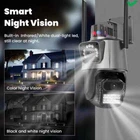 Dual-Lens with Dual Screen Auto Tracking PTZ WIFI Camera Dual lens, Dual screen, 4x zoom, Police Light alarm, humanoid tracking, two way voice intercom 360 monitoring, full color night vision, IP66 waterproof, mobile phone remote monitoring,Share video, SD card storage, 24 hours video recording ● 8MP 4MP Resolution Option ● Dual-Lens with Dual Screen ● AI human detection Alarm ● 3.6mm Dual lens camera system ● 20~25 meters Colorful/Black White Night Vision ● Enhanced dual antenna penetration ability ● Pan 270 degree/ Tilt 90degree ● Two-Way Audio Talk Speak Real Time ● Motion Detection and Alarm Tone Function ● 2.4Ghz WiFi and Wired Connection two Mode ● AP Hotspot Mode Access ● Waterproof IP66 Use for Outdoor ● TF Card Slot Support Max 128 GB. ● Encryption security cloud storage ● Remotely View via the App iCSee on Smartphone Packing List: 1x PTZ Camera 1x User Manual 1x Power Supply 1x Screws Bag Warm tips: the SD Card is optional :) 4MP 8MP comparison 4MP camera version: Means that the single lens is 2MP, so the dual-lens is 2MP+2MP=4MP. 8MP camera version: Means that the single lens is 4MP, so the dual-lens is 4MP+4MP=8MP.
