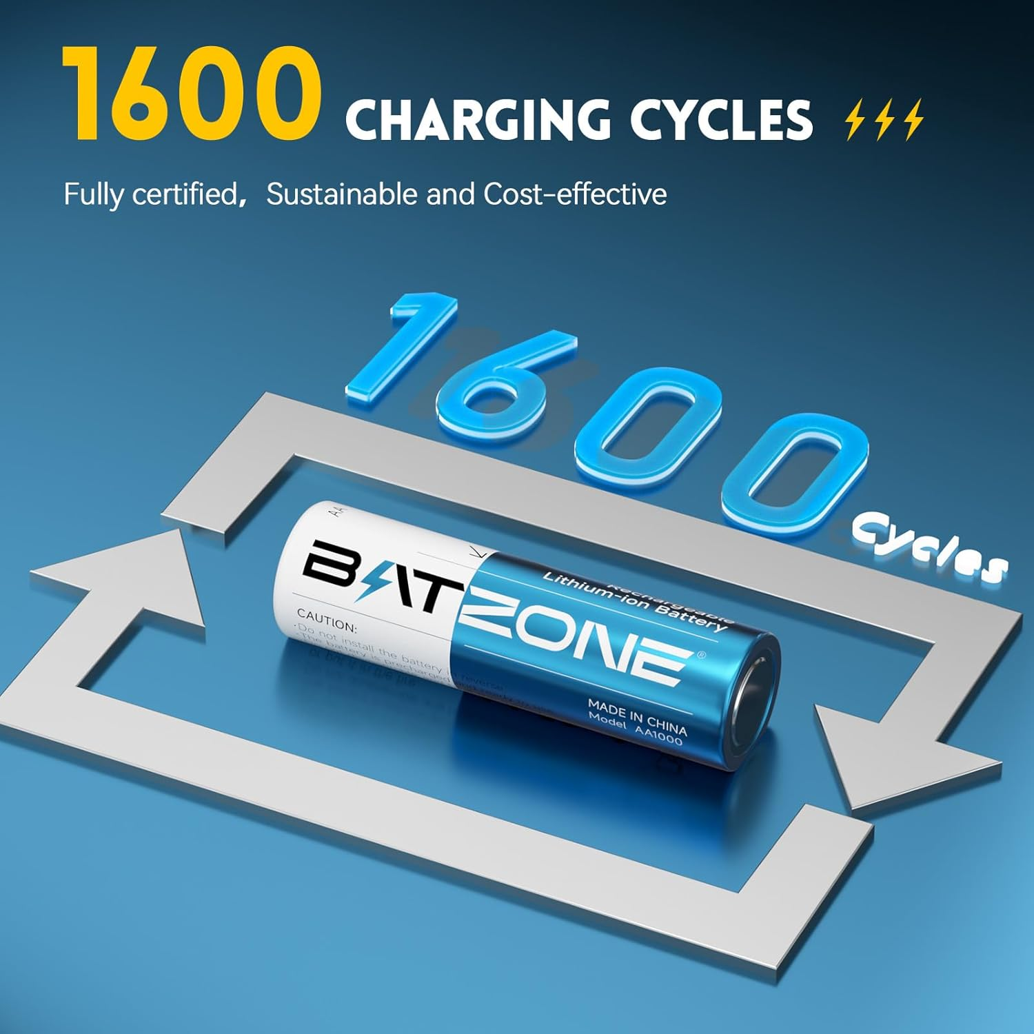 【Ultra-high Capacity and 1.5v Voltage Output】BATZONE rechargeable lithium aa batteries with a high capacity of 3000mWh and higher energy density,which allows for a high number of charge/discharge cycles and a long lifespan.Constant output of 1.5V for the entire process until the power is completely depleted, keeping your device in top condition at all times. 【1600 Times Long Cycle Life】With no memory effect and a very low self-discharge rate, our double a rechargeable lithium batteries have more than 1600 rechargeable cycles, which can save you a lot of money.Overall, rechargeable Lithium AA batteries are a convenient power source,providing a reliable and long-lasting energy supply for everyday use. 【Integrated Charging and Storage】With 8 independent charging slots, the lithium battery charger adopts a magnetic design, allowing the battery charging and storage as one, making the battery storage and carrying more convenient, supporting 1-8 AA lithium batteries in any combination of charging. 【2.5H Fast Charging Technology】2.5 hours quick charge for 1-8pcs aa lithium batteries, reduce your waiting time.Type-C charging port is suitable for all kinds of interface input, you could use a laptop, car charger,power bank,adapters etc. to charge the battery,make the charging more flexible.(Recommended: 5V/3A) 【A Popular Choice for Portable Electronics】BATZONE rechargeable lithium aa batteries with charger feature 3000mWh and 1.5V constant voltage output, ideal for high power consumption devices,such as Gamepad, VR Grip, Doorbell, Camera, Flash, Door Lock, Microphone, Radio, Children's Toys, Alarm Clock, Scale, Blood Pressure Monitor and so on.(Also Suitable for blink camera ) Product Description The video showcases the product in use. The video guides you through product setup. The video compares multiple products. The video shows the product being unpacked. 1 3000mWh Long Lasting 2 Constant 1.5V Output 3 Activated Battery 4 Low Self- Discharge 5 Multiple Protection
