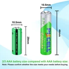 Product Features: PKCELL genuine for sale No memory effect Nickel-hydrogen environmentally friendly material, no pollution 100% brand new, high quality and competitive price Recycling above 500times Rechargeable battery with good performance 30% more power reserve than Ni-Cd batteries Longer service life than Ni-Cd batteries Wide range of operating temperatures(-20°C~+55°C) Can be used for solar light、garden light、digital camera、portable video、remote control、toy etc. NIMH battery models are fixed, and there is no worries about using a NIMHbattery in the future when no spare battery can be purchased. Product Specification: Brand: PKCELL Size: 2/3AAA ( NOT Regular AAA battery ) Model:2/3AAA NI-MH Rechargeable Battery Button Top Volt: 1.2 volt Capacity:400 mAh Dimension :about 10.5*29.5mm Weight:About 10g/pcs Terminals: Button Top Chemistry : NiMH Standard charge 16 hours at 30mA Note: -2/3AAA Batteries: Not standard AAA batteries, shorter than AAA batteries, please see the dimensions before buying. -Standard Charging: These rechargeable NiMH batteries can be charged via NiMH or universal charger. -Charge before using them to make them work longer. Package included: 8pcs 400mAh 2/3AAA NiMH Rechargeable Batteries