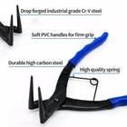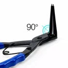 PREMIUM QUALITY -- Made of high-strength steel. Heat treated construction with finish for strength and corrosion resistance. MAIN FUNCTION -- 90-degree bent nose pliers can be used to remove and install small to medium internal the snap rings up to 2"/53mm deep on the hydraulic master cylinders on motorcycles/cars/trucks. COMFORTABLE HAND-FEELING -- Spring loaded action for ease of use. Eco-friendly PVC moulded handles for comfortable grip to hold. SPECIFICATIONS -- Diameter of small tips: 0.06"/1.3mm. Length of jaws: 2"/53mm. Maximum length of opening jaws: 2/3"/17mm. Specifications: Material: Hight-strength Steel(Heat Treated) Weight: 250g Total Length: Small tips: 0.06"/1.3mm Length of jaws: 2"/53mm Maximum length of opening jaws: 2/3"/17mm Package Includes: 1* Heavy-duty Snap Ring Pliers