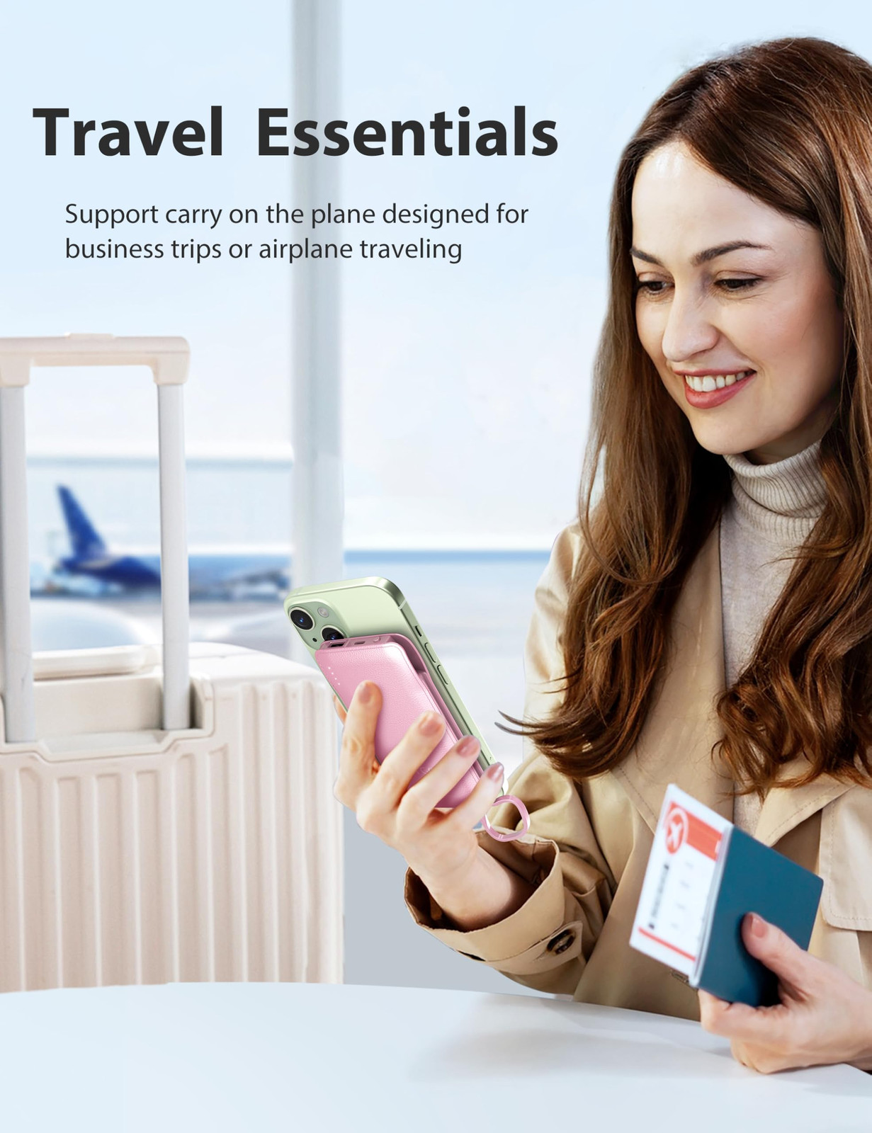 Portable Charger with Foldable AC Wall Plug and Cables:there is an ac wall plug and cables built-in the portable cell phone charger,allowing to recharge itself directly from the wall outlet and power your phone with the built-in cord,No additional cables are required All-in-one Power Bank:This external battery pack not only has an AC plug, but also has two charging cables.It is so convenient that can be used without other adapters and cables A great accessory for business or travel Ultra Slim but Powerful:The battery charger is designed to be just 0.69 inches thick, thin enough to slip easily into your wallet or pocket.Besides, 10000mAh high capacity can charge your phone 2-3times, keeping your phone fully charged all the day,when you are traveling or on a business trip that will be helpful Universal compatibility: The battery pack contains multi-type cables for all kinds of smartphones It is widely compatible with 16/15/14/13/16Pro/15Pro/14Pro/16Pro Max/15Pro Max, etc, and most Android phones What You Get: 10000mAh Battery Charger x 2 (Black x 1, Pink x 1), USB Type-C Charging Cable x 1 and User Guide x 1