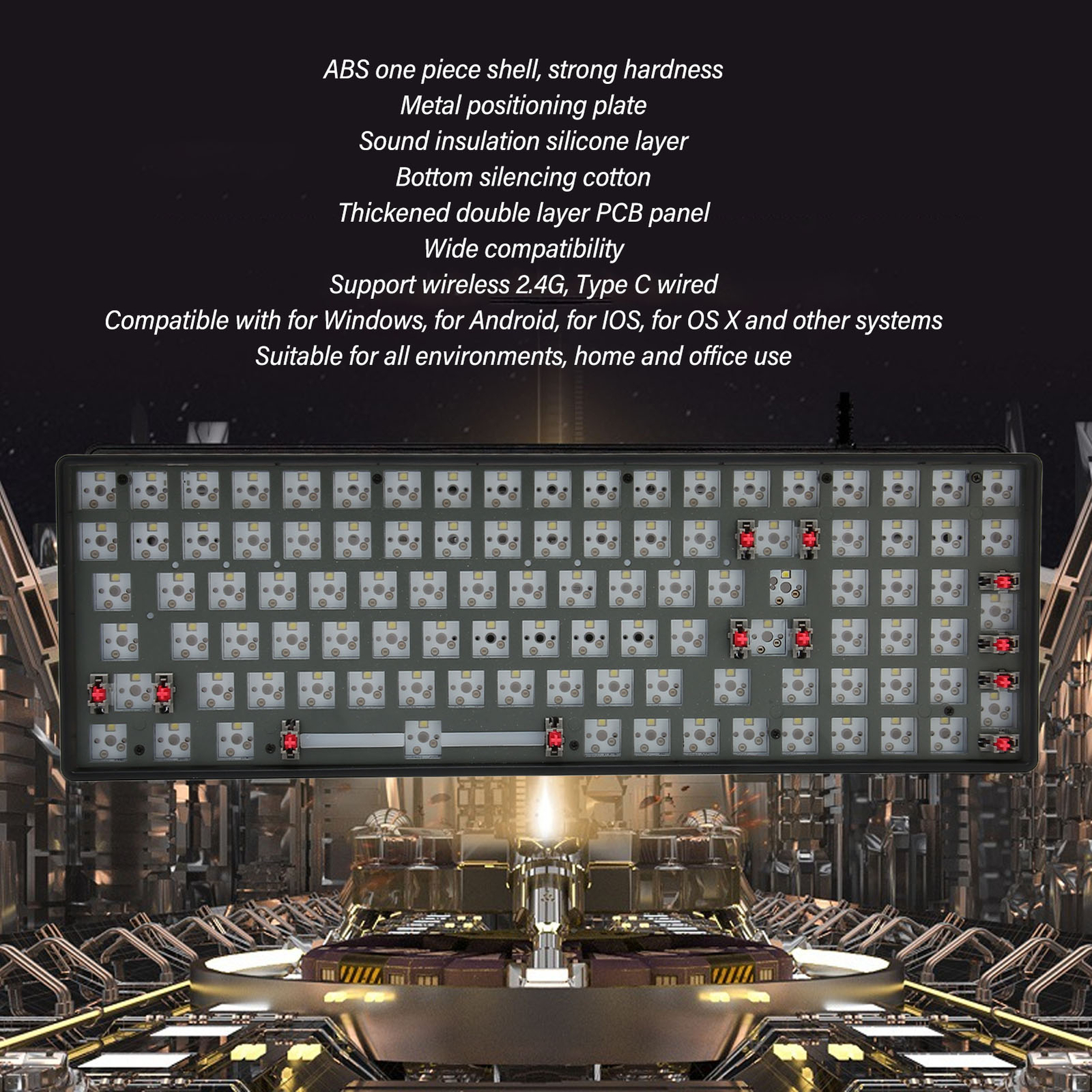 Feature: 1. DIY KEYBOARD: DIY 100 keys mechanical keyboard kit, hot swappable shaft base, feel free to match any axle body and keycap, DIY your favorite keyboard. 2. HOT SWAPPABLE: Hot swappable shaft base, combined with double thickened PCB panel, bring longer plug life. Note: Support standard height 5 pin switch, does not support 3 pin switch. 3. DESIGN: ABS one piece shell, strong hardness, metal positioning plate, silicone sound insulation layer, bottom silencing cotton, thickened double layer PCB panel, is your keyboard DIY choice! 4. WIDE COMPATIBILITY: Mechanical keyboard DIY kit supports wireless 2.4G, 5.0, Type C wired; compatible for , for , for IOS, for OS X and other systems, the keyboard is suitable for all environments, home and office use. 5. NOTE: When installing the shaft, please check if the pins of the shaft are bent. The hot‑swappable shaft holder needs to be inserted vertically during installation. Keyboard keycap layout is 96% layout, please select keycaps that support 96% layout when choosing keycaps! (The product does not come with the shaft and keycap, you need to prepare all by yourself). Specification: Item Type: Mechanical Keyboard DIY Kit Material: ABS Battery Type: 2 x AAA Batteries (not Included) Key: 100 Keys (96% Layout) Structure: Gasket Structure Connection: Support 2.4G, 5.0 Connection, USB C Key Line Separation System Support: for , for , for IOS, for OS X, Etc. Package List: 1 x Mechanical Keyboard Kit 1 x 2.4G Adapter 1 x Power Supply Cable 1 x Key Puller 1 x Adhesive Sheet 1 x Instruction Manual 1 x Dust Cover 1. Our listing price includes the value of goods,packaging cost,and export taxes,not including international duties. 2. duties,taxes,and charges are not included in the item price or shipping fee. 3. T he duties are buyers' responsibility .Please check with your country's customs office determine what these additional costs will be prior to your purchase. 4. All disputes arising from the duties will be submitted to ebay for solution. 1. Any questions, pls. contact us via ebay message or email us. We will reply your message within 48 hours. If you do not receive our reply within 48 hours, pls. post a message again because sometimes our message system may block some emails. 2. If you are satisfied with our service, pls. kindly leave us a positive feedback and give us the Detailed Seller Rating with all " 5 " in very area 3. Our aim is to provide Level Customer Service, your recognition will encourage us greatly and serve you better. We strive to keep all our customers satisfy. We will do our up most to exceed your expectations in customer service, communication and dispatching of your orders.