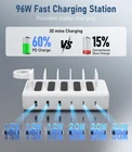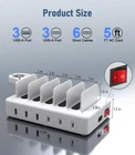 【New Upgraded USB-C Charging Ports】This new upgraded multiple charging station features 3 PD 20W USB-C ports.Compare with the traditional A port, you can charge your phone to 60% in just 30 minutes.Use the usb charging station with our type c cable to experience lightning-fast charging speed 【Maximize Your Charging】This phone charging station equipped with 3 USB-C and 3 USB-A ports, offering a total output of 96W. The multi charging station can meet all kinds of charging needs, providing fast and efficient charging for all your devices and saving a lot of time 【Organized Charging Setup】The charger station is designed with 6 sturdy dividers and apple watch stand to minimizes cable clutter and keeps your workspace tidy. The larger dividers prevent devices from slipping, effectively organizing your desk for a neat and orderly look 【Intelligent Device Protection】Our charging station for multiple devices apple has real-time temperature monitoring technology. It automatically cuts off the power supply when the temperature is too high to prevent short circuit.This apple charging station also has overheating and overcharging protection to maximize protection 【Wide compatibility】The charging station for apple devices is compatible with 1000+ usb devices.Whether you are in school, office, bedroom, desk or bedside table, it can easily charge all your electronic devices at the same time. It is also a perfect gift for family and friends 【WHAT YOU GET】The package includes 1 cell phone charging stations, 6 mixed cables, 1 power adapter, 1 user manual,18-month warranty and friendly customer service. Note: For a better experience, we recommend using the charging cables that come with our desk charging station
